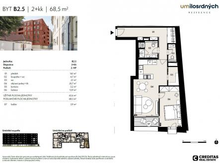 Nabízíme k pronájmu prémiový byt 2+kk s výměrou 69 m2 a lodžií 3,9 m2 v zcela novém developerském projektu U Milosrdných, který je mistrovským dílem renomovaného architekta Zdeňka Fránka. Byt se nachází v prvním patře. V nabídce jsou i další bytové jednotky, které se postupně finalizují. Cena je v závislosti na podlaží a dispozici. Jednotka bude kompletně vybavena vestavěným i solitérním nábytkem, což zaručuje maximální pohodlí a komfort pro nové nájemníky. Design celého projektu je nadčasový a elegantní, čímž vytváří harmonii mezi moderním stylem a historickou atmosférou Starého Města. Projekt U Milosrdných se nachází v lukrativní části historického centra Prahy, jen pár kroků od řeky Vltavy a oblíbené náplavky. Perfektní dopravní dostupnost zajišťuje stanice metra B – Náměstí Republiky, která je vzdálena jen několik minut chůze. V bezprostředním okolí najdete veškerou občanskou vybavenost, včetně OC Palladium a pestré nabídky restaurací či kaváren. K bytu je možné pronajmout sklepní prostor za 1 000 Kč a parkovací stání ve výši 4 000 Kč v podzemních garážích domu. Tato nabídka je ideální pro náročné zájemce hledající moderní bydlení s veškerým zázemím. Kauce činí tři měsíční nájmy a provize 50% měsíčního nájmu bez poplatků. Měsíční poplatky cca 11 000 Kč. K dispozici IHNED. Pro více informací nás neváhejte kontaktovat.
