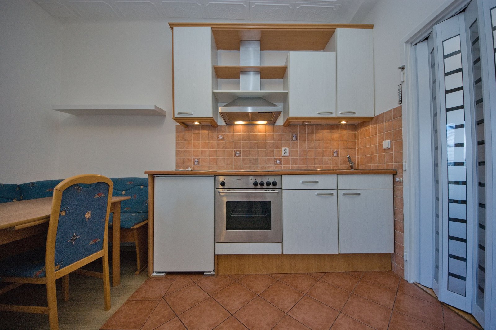 Nově uvolněno od 01.01.2026! Nová výmalba a podlahy. Krásný a velmi světlý byt 2+kk (34,3m2) s velkou terasou se stahovací markýzou (13,1m2) v nízkopodlažním (čtyřpatrovém) cihlovém domě na Pankráci přímo u parku Jezerka, ul. U družstva Ideál. Pronájem určen maximálně pro dvě (2) osoby. Zvířata povolena (malé rasy). Výborná dostupnost MHD (800 m od metra Pankrác nebo Pražského povstání – 2 min. busem nebo 10 min. chůze. Nádherný výhled, absolutní klid, množství zeleně. Byt ve 4. patře bez výtahu. Za domem oplocená zahrada k užívání. Orientace oken na severozápad = na terase slunce již od 14:00 hodin. Na podlahách dlažba a vinyl, vytápění 1xWAW a 1x olejový el. přímotop. Ohřev vody bojlerem. Koupelna s vanou, WC oddělené - zděné jádro. Pračka v předsíni. Kuchyňská linka se sklokeramickou deskou, el. troubou, lednicí a digestoří. Částečně zařízený nábytkem (viz foto), včetně postele na míru. Plastová okna a stoupačky. Stropy vysoké 275 cm. Kabelová televize a internet Vodafone (UPC) 1Gb/s. K dispozici drátěný sklep 2,7 m2. Kompletní občanská vybavenost v místě + Arkády Pankrác 800 m od domu. K nastěhování od 01.01.2026. Cena 18.900,-Kč/měs. + služby 1.200,-Kč/2os. + elektřina 2.200,-Kč a plyn 1.400,-Kč. Kauce ve výši 20.100,-Kč (v případě přítomnosti domácích mazlíčků bude kauce 40.200,-Kč) , provize RK 18.900,-Kč + 21% DPH.