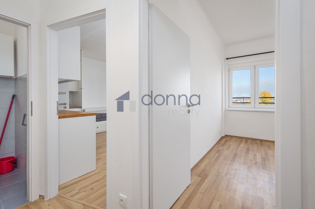 Pronájem pěkného světlého bytu 2+kk, o ploše 47m2 + terasa 11,2m2, umístěný v posledním 6. patře (7.NP) cihlového domu s výtahem a úžasným výhledem, Praha 3, ul. Hartigova. Byt je částečně zařízený viz foto v nabídce. Vstupní chodba, ložnice, pokoj s kuchyňským koutem se spotřebiči (varná deska, malá myčka nádobí, mikrovln. trouba, lednice), jídelní stůl + židle, rozkládací pohovka - lůžko IKEA vč. matrace. Koupelna se sprchovým koutem a pračkou, samostatná toaleta. Topení plynové WAWE. Velmi dobrý stav interiéru a kvalitní provedení. K bytu náleží sklep o ploše 4m², který poskytuje další úložný prostor. K nastěhování od 1. 2. 2026. Byt je nekuřácký. Nájem 22 500 Kč + poplatky 900 Kč + energie (elektro + plyn) 3.000 Kč. Kauce 30.000 Kč + provize RK. Pronajímatel si vyhrazuje právo výběru nájemce.