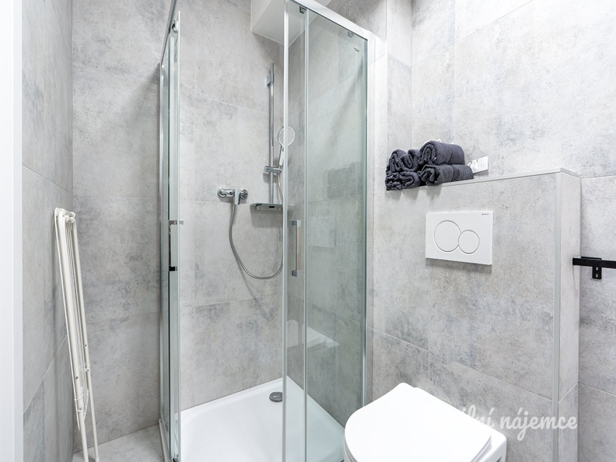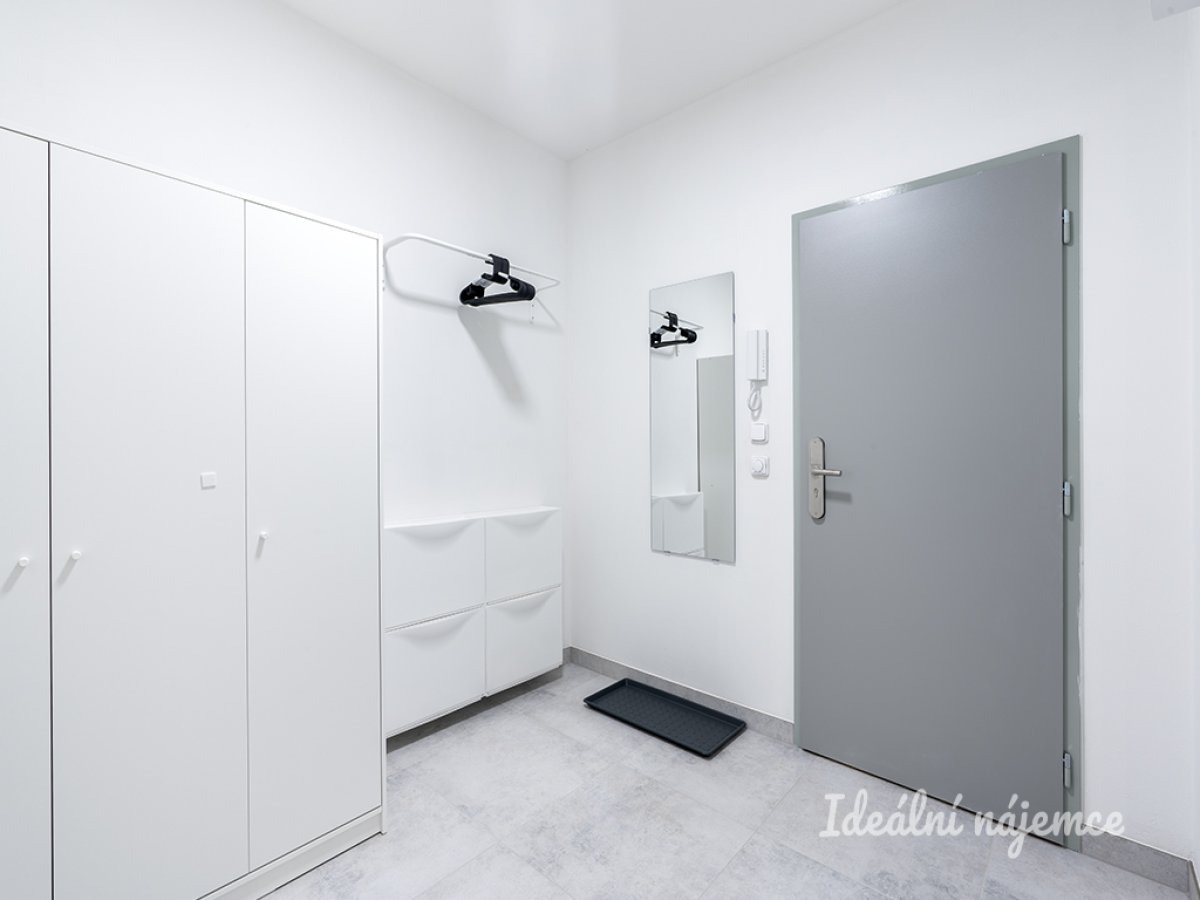 K dlouhodobému podnájmu nabízíme krásný nový, kompletně vybavený byt o dispozici 2+kk v klidné lokalitě Kyje vybavený inteligentním přístupem do domu i bytu. Byt o celkové výměře 42m2 + 5,5m2 balkon, se nachází ve 2. podlaží cihlového domu s podlahovým vytápěním. Byt se nabízí plně vybavený. Kuchyně disponuje lednicí, myčkou, elektrickou troubou, varnou deskou, mikrovlnnou troubou, rychlovarnou konvicí a digestoří. Obývací část je zařízena rozkládací pohovkou, tv stěnou s televizí, jídelním stolem a židlemi. V ložnici je postel, matrace včetně lůžkovin a ložního prádla, skříně, stůl a židle. V koupelně je sprchový kout, umyvadlo, toaleta, pračka, i ručníky. Základní internetové připojení je v ceně služeb. Přímo v domě se nachází fítness centrum, kadeřnictví a nehtové studio. V okolí domu najdete restaurace, supermarket, základní a mateřskou školu, lékárnu atd. Výborná dopravní dostupnost: - Čtyři minuty chůze od domu je zastávka metra Rajská Zahrada a vlaková stanice Praha Rajská Zahrada vlakem (!!za 13 minut v centru Prahy!!) - Autobusové zastávky jsou hned vedle domu. Majitel preferuje zájemce bez domácích mazlíčků. Byt je volný k nastěhování od 1.3.