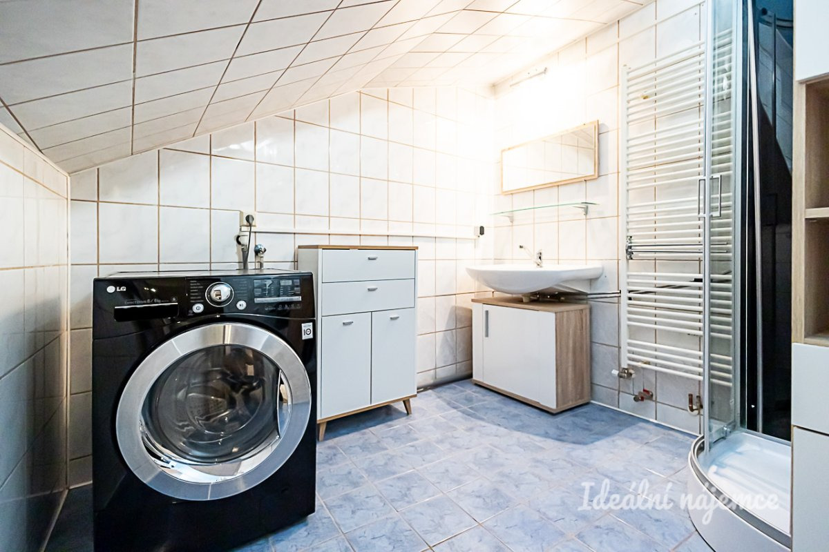 K dlouhodobému podnájmu nabízíme světlý byt o dispozici 2+kk v klidné lokalitě Praha 10 - Záběhlice. Byt o celkové výměře 58 m² se nachází v 1. patře dvoupatrového rodinného domu. Součástí bytu je praktická komora a k bytu přísluší garážové stání situované v přízemí objektu. Byt se nabízí plně vybavený. Kuchyňský kout disponuje lednicí s mrazákem, myčkou, elektrickou troubou, varnou deskou, mikrovlnnou troubou a digestoří. Obývací část je zařízena pohovkou, konferenčním stolem, skříňkami a jídelním stolem s židlemi. V ložnici najdeme postel, skříň a komody. V koupelně je sprchový kout, umyvadlo, zrcadlo, koupelnová skříňka a pračka kombinovaná se sušičkou. WC je umístěno samostatně. V předsíni je skříň, věšák a botník. V okolí domu najdeme restaurace, prodejny potravin, nákupní centrum VIVO! Hostivař, polikliniku s lékárnou, Hamerský rybník a Sportovní areál Hamr atd. Pár minut chůze od domu jsou vzdáleny autobusové zastávky V Korytech a U Lípy, umožňující rychlé spojení na metro. Majitel preferuje zájemce bez domácích mazlíčků. Byt je volný k nastěhování ihned. Energetická třída: G (průkaz nedodán).