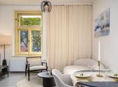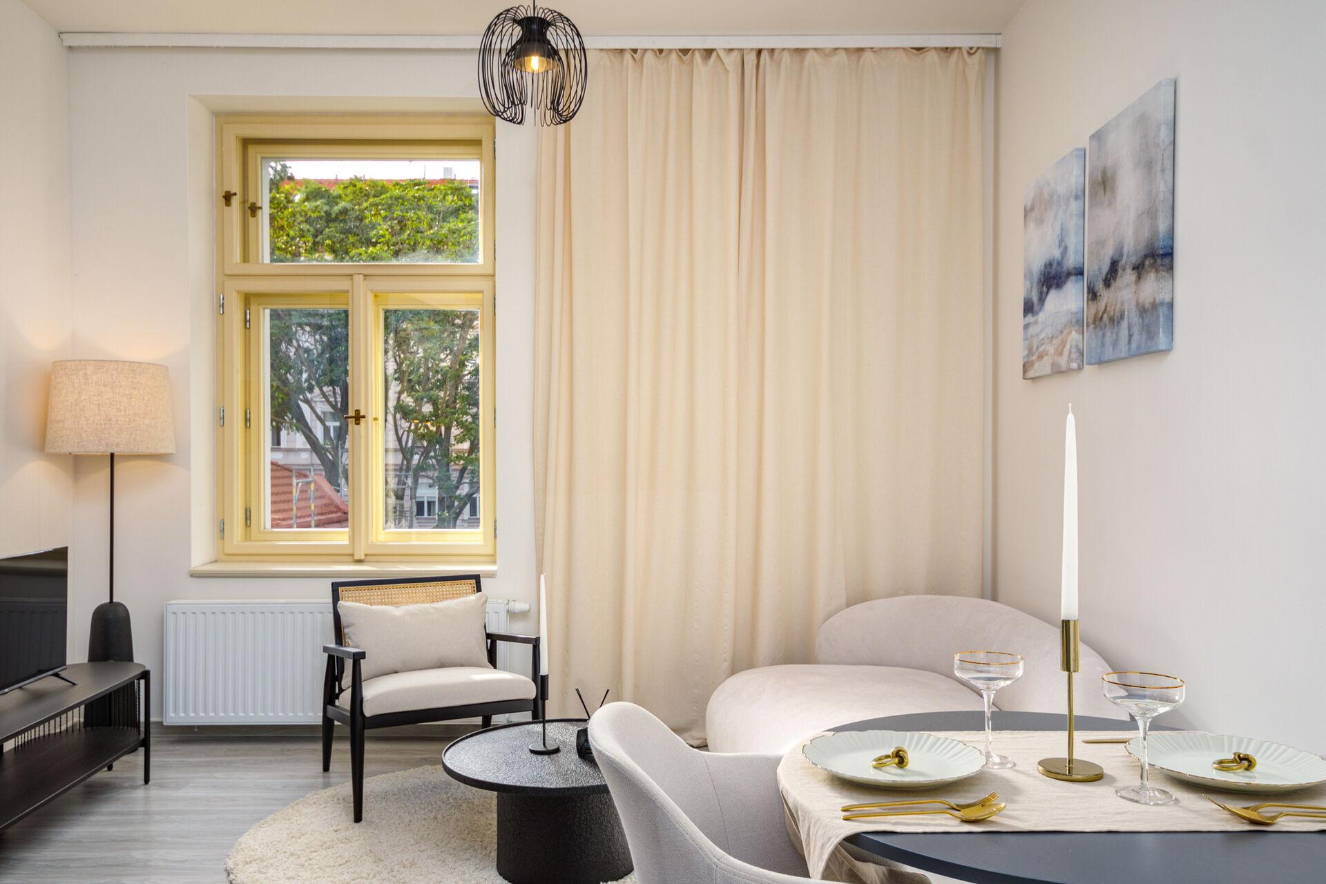 K pronájmu nabízíme moderní a plně vybavený byt o dispozici 2+kk a velikosti 35,2 m², který se nachází ve 4. patře Rezidence Grébovka, jen pár kroků od Havlíčkových sadů (Grébovky). Tento světlý a útulný byt je připraven k okamžitému pohodlnému bydlení bez nutnosti dalších investic. Po vstupu do bytu Vás přivítá prostorná chodba, ze které je vstup do koupelny se sprchovým koutem, toaletou a pračkou se sušičkou. Následuje obývací prostor s kuchyňským koutem, kde je moderní kuchyňská linka vybavená všemi spotřebiči, lednicí s mrazákem, myčkou, troubou, indukční varnou deskou a dalším vybavením. Byt nabízí také samostatnou ložnici a obývací část s pohodlným gaučem, televizí a úložnými prostory. Vše je v perfektním stavu a připraveno k nastěhování. Díky umístění v oblíbené lokalitě nabízí výbornou dostupnost do centra města, kompletní občanskou vybavenost a klidné prostředí v bezprostřední blízkosti parku Grébovka, ideální pro příjemné bydlení.