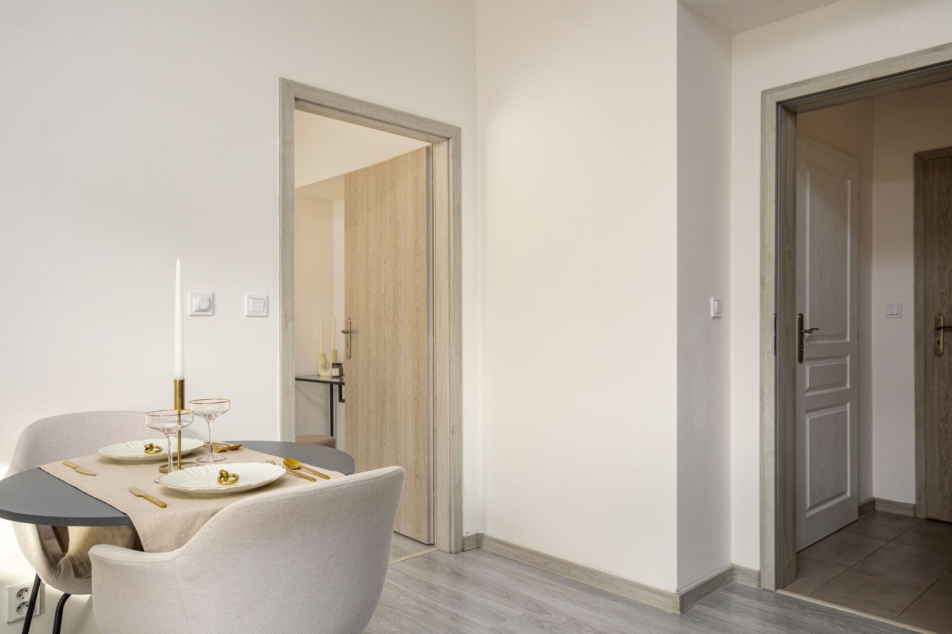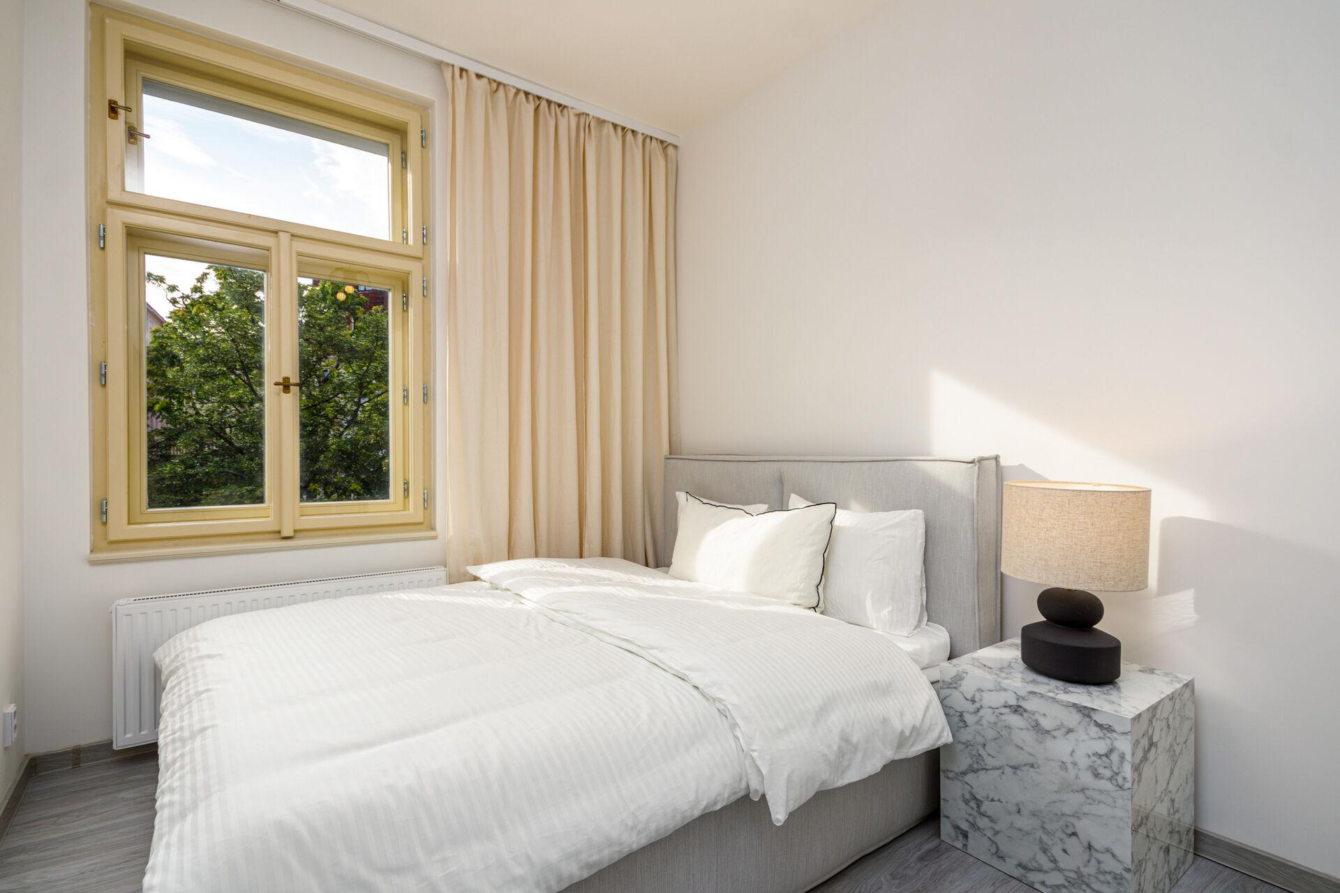 K pronájmu nabízíme moderní a plně vybavený byt o dispozici 2+kk a velikosti 35,2 m², který se nachází ve 4. patře Rezidence Grébovka, jen pár kroků od Havlíčkových sadů (Grébovky). Tento světlý a útulný byt je připraven k pohodlnému bydlení bez nutnosti dalších investic. Po vstupu do bytu Vás přivítá prostorná chodba, ze které je vstup do koupelny se sprchovým koutem, toaletou a pračkou se sušičkou. Následuje obývací prostor s kuchyňským koutem, kde je moderní kuchyňská linka vybavená všemi spotřebiči, lednicí s mrazákem, myčkou, troubou, indukční varnou deskou a dalším vybavením. Byt nabízí také samostatnou ložnici a obývací část s pohodlným gaučem, televizí a úložnými prostory. Vše je v perfektním stavu a připraveno k nastěhování. Díky umístění v oblíbené lokalitě nabízí výbornou dostupnost do centra města, kompletní občanskou vybavenost a klidné prostředí v bezprostřední blízkosti parku Grébovka, ideální pro příjemné bydlení.
