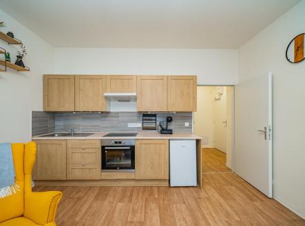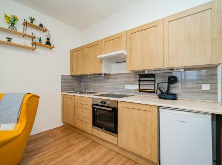 Nabízíme Vám k pronájmu krásný zrekonstruovaný byt 2kk, výměra 44 m2, v rodinném domě v klidné lokalitě na Břevnově, ul. U První baterie. Kuchyně je vybavena novou kuchyňskou linkou vč. spotřebiců (sklokeramická deska, trouba, digestoř, malá lednice), ta je propojena s obývacím pokojem. Dále je k dispozici samostatná ložnice. Koupelna se sprchovým koutem a toaletou. Teplá voda bojlerem, připojení na pračku v komoře. Velkou výhodou bytu je topení řešené moderními akumulačními kamny a nízkým tarifem elektřiny. Měsíční nájemné činí 21.900,-Kč, poplatky činí 3.500 Kč/2 osoby, jistota majiteli 40.000 Kč a jednorázová provize RK ve výši 21.900,-Kč. Smlouva o dodávce elektrické energie bude převedena na nájemce podpisu nájemní smlouvy a předání bytu.