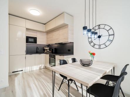 Nabízíme Vám k pronájmu byt 2kk s lodžií o celkové ploše 60 m2, v novostavbě bytového domu v uzavřeném objektu s recepcí. Jedná se o velmi povedený projekt. Byt je ve čtvrtém patře domu s výtahem. Byt je vybavený nábytkem včetně vestavných skříní a pračky se sušičkou. Prostorný obývací pokoj se vstupem na lodžii bytu je moderně propojený s kuchyní. Ta je vybavena kuchyňskou linkou včetně spotřebičů (varná deska, trouba, digestoř, myčka nádobí a lednice). Dále je k dispozici samostatná ložnice s manželskou postelí a zmiňovanými vestavnými skříněmi. Velkou výhodou je úložná komora. Koupelna se sprchovým koutem a toaletou. V ceně nájmu je i parkovací místo v suterénu domu. Nájemné 27.500,-Kč, poplatky 4.250,-Kč, elektřina bude převedena na nájemce ve výši cca 1.000,-Kč, jistota 55.000,-Kč, jednorázová provize 27.500,-Kč.