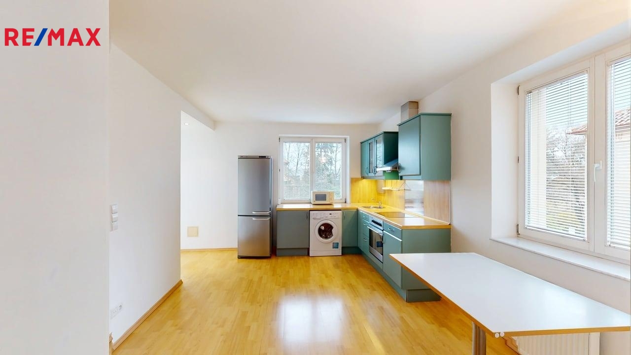 Exkluzivně nabízím velkoryse řešený byt o velikosti 68m (50 m2 byt + 17 m2 terasa + 1 m2 balkon), nacházející se v klidné části Praha 5 - Košíře. Byt bude připraven k nastěhování od 1.3.2026 a zůstává vybaven tak, jak vidíte na fotografiích a 3D skenu. V předsíni je praktická vestavná skříň a praktický botník. Koupelna disponuje jak vanou tak i sprchovým koutem, je zde podlahové topení a wc je odděleno od prostoru koupelny. Byt může být dispozičně pojat jako 1+1 nebo jako 2kk. V jedné ze dvou místností se nachází prostorná kuchyňská linka se spotřebiči (lednice s mrazákem, varná deska, elektrická trouba, mikrovlnná trouba, pračka), zároveň je zde vstup na velkou terasu o velikosti 17m. Druhá místnost je vybavena gaučem, skříní, psacím stolem, TV stolkem a konferenčním stolkem. Z této místnosti je vstup na balkon. Jak balkon, tak terasa dávají bytu další rozměr: obyvatelům bytu umožňují trávit čas i venku, na čerstvém vzduchu, pěstovat si zde bylinky nebo zeleninu, grilovat či relaxovat. Okna jsou orientována na 3 světové strany (jih, sever a východ), což zajišťuje v bytě dostatek světla. Zároveň komfort případného zastínění umožňují, jak vnitřní žaluzie, tak elektricky ovládané venkovní rolety. Byt se nachází v atraktivní lokalitě plné zeleně. Nedaleko bytu se nachází rozlehlý Přírodní park Košíře-Motol (Cibulka), kde můžete trávit chvilky odpočinku při procházkách v přírodě nebo vyrazit na kolo. Dále jsou nedaleko tenisové a squashové kurty (Cibulka, Šmukýřka) nebo golf v Motole. Do Prokopského údolí 15 min. Byt se nachází v oblasti s plnou občanskou vybaveností (k dispozici je mateřská a základní škola, také německá škola v Jinonicích, střední a vysoké školy taktéž v dosahu prostřednictvím MHD a do FN Motol je to cca 15 minut MHD či autem) a snadným spojením do centra pomocí MHD (nedaleko je zastávka autobusu č. 123, stanice metra Jinonice, taktéž železniční zastávka Praha - Cibulka). Pokud vás byt zaujme, kontaktujte mě, prosím, a naplánujeme osobní prohlídku bytu. Před samotnou prohlídkou nepřehlédněte virtuální 3D prohlídku, případně požádejte o její zaslání.
