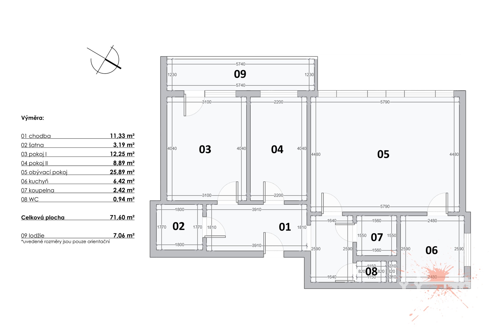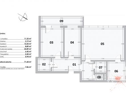Pronájem bytu 3+1 72 m² s lodžií, šatnou a garáží, Praha - Michle