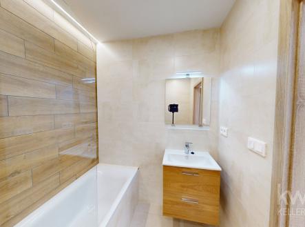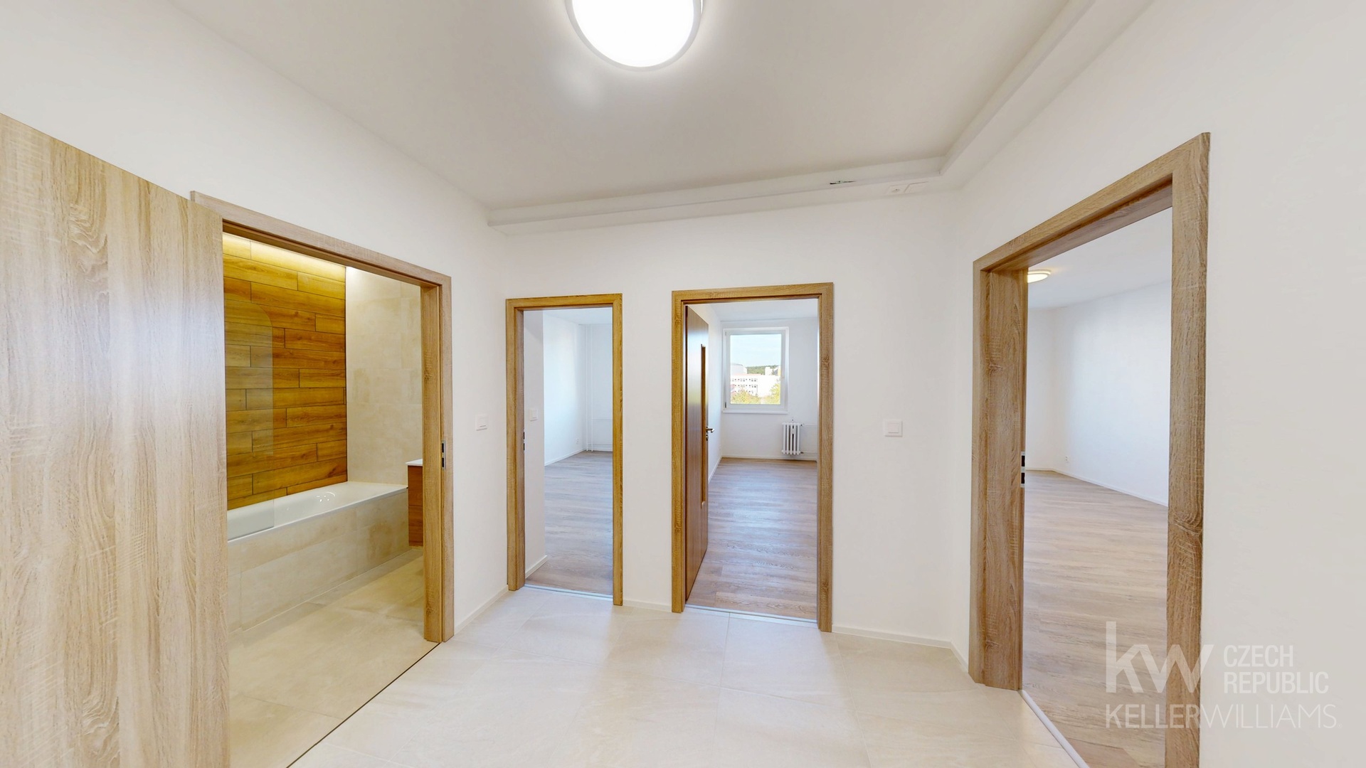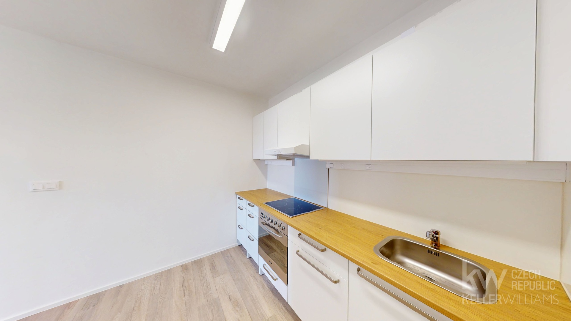 Nabízíme k dlouhodobému pronájmu nově zrekonstruovaný byt 3+kk o velikosti 63,6 m² v 6. patře domu s výtahem a PENB – B. Byt je nevybavený a připravený k nastěhování od 15.3. Dispozice: obývací pokoj s kuchyní – 27,2 m² pokoj – 12,6 m² pokoj – 8,4 m² předsíň – 11,6 m² koupelna s WC – 3,8 m² zasklená lodžie – 4,2 m² 2 sklepní kóje – jedna na patře, druhá v 1. PP (celkem 3,4 m²) Byt prošel kompletní rekonstrukcí (nové podlahy, koupelna, kuchyň, rozvody, omítky, dveře). Parkování: Parkování před domem bez modré zóny, případně možnost pronájmu venkovního hlídaného stání cca 300 m od domu za 1 000 Kč/měsíc. Náklady: Nájemné: 25 000 Kč/měsíc Poplatky pro 1 osobu: 3 364 Kč/měsíc (další osoby dle spotřeby) Kauce: 25 000 Kč Provize RK: 25 000 Kč + DPH Lokalita: Klidná část Modřan s kompletní občanskou vybaveností – v docházkové vzdálenosti jsou obchody, poliklinika, školy, školka, restaurace. Tramvajová a autobusová zastávka je jen pár minut chůze a dostane vás za 15 min na metro C Kačerov nebo metro B Smíchovské nádraží. V okolí je dostatek zeleně, Modřanská rokle i cyklostezka podél Vltavy. První prohlídkový den je naplánovaný na 14.2. Těšíme se na vás.