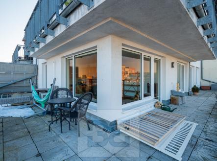K nastěhování ihned. Nabízíme k pronájmu prostorný a světlý byt 3+kk o celkové ploše 70 m² s mimořádně velkou terasou o výměře 60 m², který se nachází v 6. patře moderní, dobře udržované a zateplené budovy z roku 2006 od renomovaného developera FINEP, v ulici Zakšínská. Jednou z největších předností bytu je rozlehlá terasa, zčásti krytá, orientovaná na severozápad, která nabízí dostatek prostoru. Byt má velmi praktickou dispozici. Obývací pokoj je propojen s kuchyňským koutem, je vybaven kuchyňskou linkou se spotřebiči, jídelním stolem a gaučem. V obývacím pokoji jsou dřevěné podlahy a je zde instalována klimatizace. Ložnice je částečně zařízená – postel, pracovní stůl a knihovna. Druhá, menší ložnice je vybavena šatní skříní. Další velkou výhodou je samostatná šatna přímo v bytě. Koupelna disponuje vanou a pračkou, toaleta je řešena samostatně. V ložnicích jsou laminátové podlahy, v celém bytě jsou na oknech rolety. Součástí pronájmu je také garážové stání v domě. Lokalita nabízí výbornou občanskou vybavenost – v blízkosti se nachází obchody, služby, restaurace, ale také soukromá jazyková škola a gymnázium. V docházkové vzdálenosti najdeme autobusovou zastávku a stanici metra Střížkov. Výhodou může být i poliklinika v těsné blízkosti. Měsíční nájem - 32900 Kč, záloha za služby spojené s užíváním bytu 6400 Kč + elektřina, kauce 40000 kč, provize 32900 kč + dph. Velkou výhodou pro potenciální nájemce je, že byt je v profesionální správě společnosti Bohemian Estates, jenž správu pro majitele tohoto bytu vykonává. Nájemci je k dispozici kontaktní osoba, která obratem řeší veškeré záležitosti s nájmem spojené (pravidelná údržba i havarijní zásahy vlastními techniky, vyúčtování, dodatky, apod.). Nájemci je tak zajištěno bezproblémové užívání bytu s kompletním servisem.