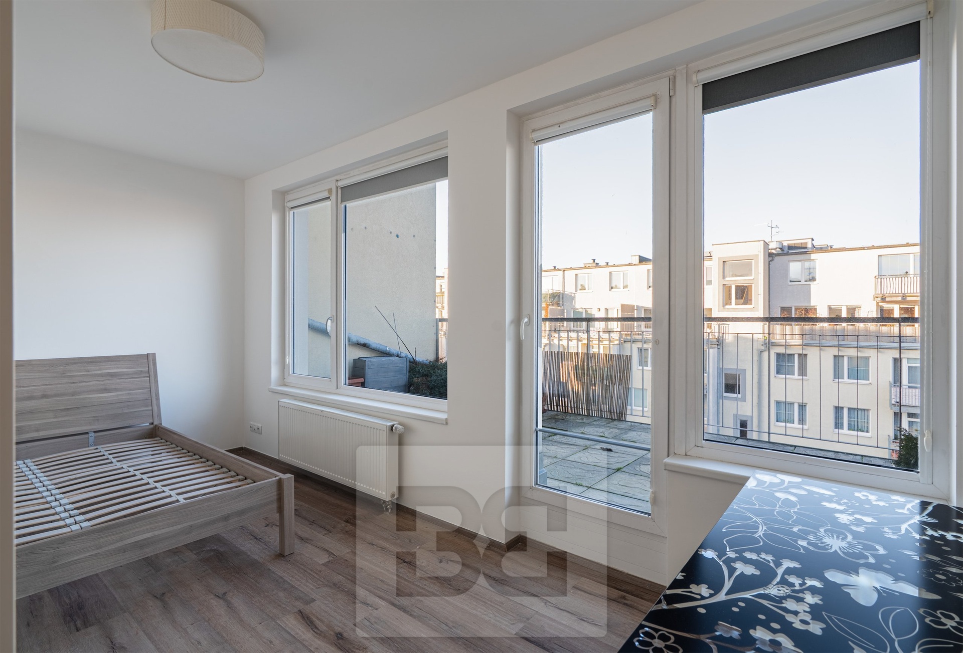 K nastěhování ihned. Nabízíme k pronájmu prostorný a světlý byt 3+kk o celkové ploše 70 m² s mimořádně velkou terasou o výměře 60 m², který se nachází v 6. patře moderní, dobře udržované a zateplené budovy z roku 2006 od renomovaného developera FINEP, v ulici Zakšínská. Jednou z největších předností bytu je rozlehlá terasa, zčásti krytá, orientovaná na severozápad, která nabízí dostatek prostoru. Byt má velmi praktickou dispozici. Obývací pokoj je propojen s kuchyňským koutem, je vybaven kuchyňskou linkou se spotřebiči, jídelním stolem a gaučem. V obývacím pokoji jsou dřevěné podlahy a je zde instalována klimatizace. Ložnice je částečně zařízená – postel, pracovní stůl a knihovna. Druhá, menší ložnice je vybavena šatní skříní. Další velkou výhodou je samostatná šatna přímo v bytě. Koupelna disponuje vanou a pračkou, toaleta je řešena samostatně. V ložnicích jsou laminátové podlahy, v celém bytě jsou na oknech rolety. Součástí pronájmu je také garážové stání v domě. Lokalita nabízí výbornou občanskou vybavenost – v blízkosti se nachází obchody, služby, restaurace, ale také soukromá jazyková škola a gymnázium. V docházkové vzdálenosti najdeme autobusovou zastávku a stanici metra Střížkov. Výhodou může být i poliklinika v těsné blízkosti. Měsíční nájem - 32900 Kč, záloha za služby spojené s užíváním bytu 6400 Kč + elektřina, kauce 40000 kč, provize 32900 kč + dph. Velkou výhodou pro potenciální nájemce je, že byt je v profesionální správě společnosti Bohemian Estates, jenž správu pro majitele tohoto bytu vykonává. Nájemci je k dispozici kontaktní osoba, která obratem řeší veškeré záležitosti s nájmem spojené (pravidelná údržba i havarijní zásahy vlastními techniky, vyúčtování, dodatky, apod.). Nájemci je tak zajištěno bezproblémové užívání bytu s kompletním servisem.