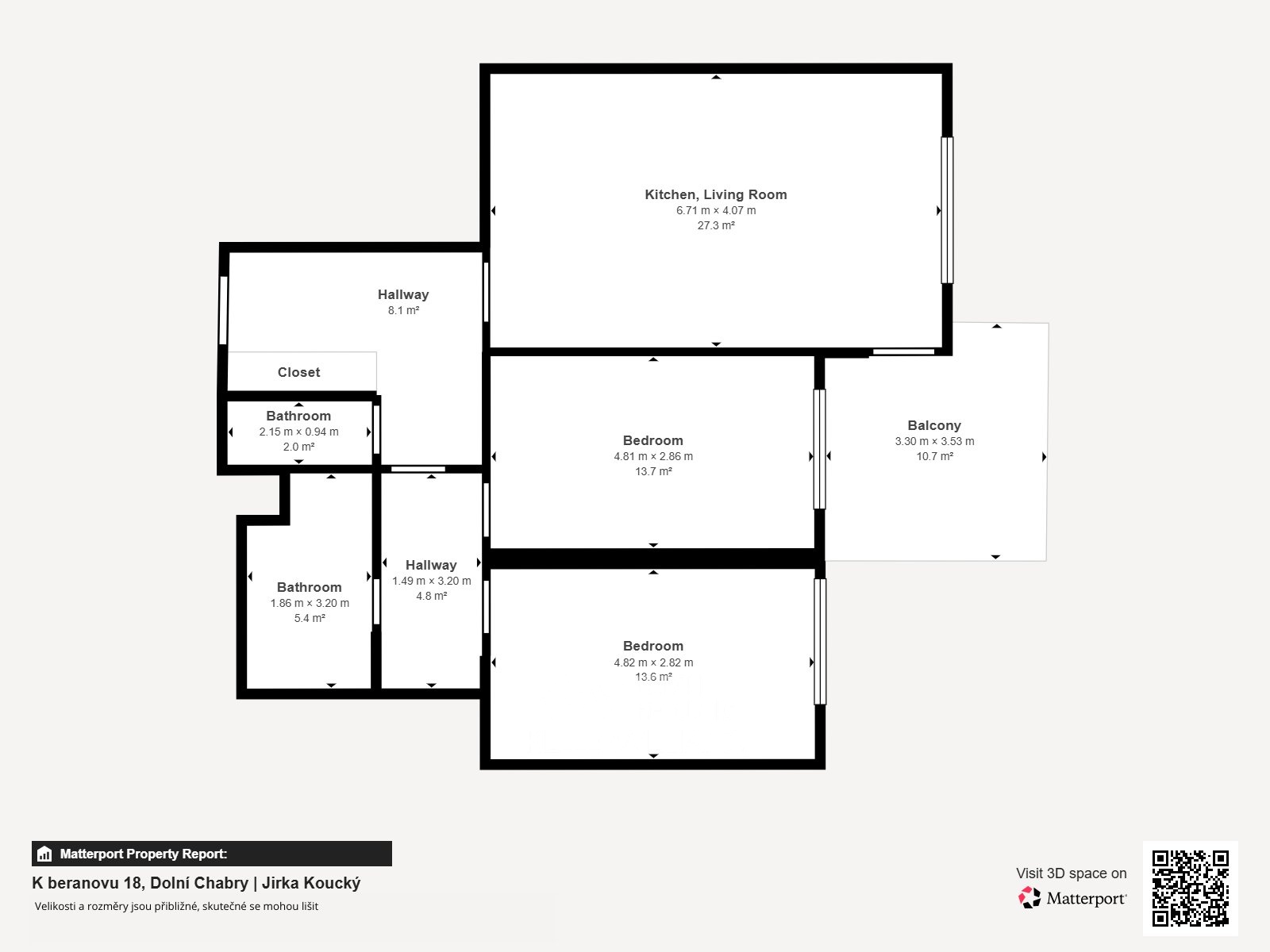 Pronájem bytu 3+kk, 85 m² + balkon 9 m² + sklep 4 m² + garážové stání | K Beranovu 18, Praha 8 – Dolní Chabry Nabízíme k dlouhodobému pronájmu velkorysý a světlý byt o dispozici 3+kk a celkové podlahové ploše 85 m², umístěný ve 3. nadzemním podlaží moderního bytového domu v klidné lokalitě Dolních Chabry. Unikátní součástí bytu je balkon o výměře cca 9 m², které jsou určeny výhradně k užívání tohoto bytu a nabízí výhled do ulice. Součástí nájmu je garážové stání a sklep v suterénu domu. Byt je ideální pro rodinu s jedním nebo dvěma dětmi, případně pro náročnější pár, který ocení prostor, soukromí, a klid. Dispozice - Byt je velmi prakticky a komfortně řešený: - prostorná vstupní předsíň - obývací pokoj s kuchyňským koutem a přímým vstupem na balkon - dvě samostatné ložnice (ložnice + dětský pokoj / pracovna) - koupelna s vanou - samostatné WC - balkon cca 9 m² - Dvě vestavěné skříně -garážové stání a sklep v suterénu domu Dispozice nabízí dostatek prostoru, soukromí i komfortu pro rodinné bydlení. Vybavení a technické informace - byt bude nevybavený - kuchyňská linka včetně spotřebičů: trouba, mikrovlná trouba, varná deska, myčka, lednice - pračka (umístěná v koupelně) - kvalitní a udržované povrchy - velmi dobrý technický stav bytu i domu - vytápění a ohřev vody: centrální - moderní, udržovaný dům s podzemními garážemi Nájemní podmínky a provozní náklady - nájemné: 29.500,- Kč / měsíc - poplatky za domovní služby: 7.000,- Kč / měsíc / pro 3 osoby (hrazeny nad rámec nájemného, jednou ročně vyúčtované dle skutečné spotřeby) - Záloha za spotřebu elektřiny je zahrnuta v poplatcích za domovní služby - Kauce 40.000,- Kč (výše kauce může být navýšena v případě domácích mazlíčků) - Provize 29.500,- Kč bez DPH (celkem 35.695,- Kč vč. DPH) K nastěhování - od 1. 2. - preferován dlouhodobý nájemní vztah Jednou z hlavních předností této nabídky je lokalita: - přímé napojení na Ďáblický a Čimický háj – ideální pro rodiny, sport i relax - jižní orientace bytu - dostatek světla po celý den - cca 10 minut na metro C - Kobylisy - cca 5 minut pěšky na autobusovou zastávku Počeradská - v okolí kompletní občanská vybavenost: (školy a školky, obchody, restaurace, služby, zdravotnická zařízení) Byt je skvělou volbou pro rodinu, která hledá prostor, soukromí, v klidné části Prahy. Jiří Koucký realitní makléř Všechny uvedené informace mají pouze orientační charakter a mohou se změnit. Tento inzerát není návrhem na uzavření nájemní smlouvy dle § 1732 občanského zákoníku. Uváděné výměry jsou přibližné. Pronajímatel si vyhrazuje právo upravit podmínky nebo upřednostnit vybraného zájemce.