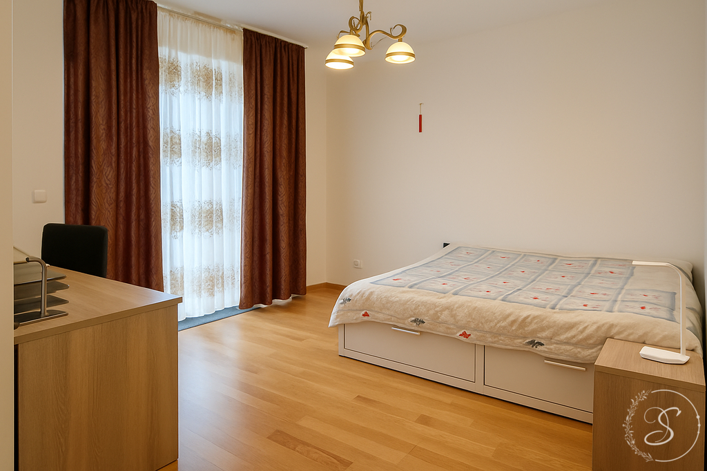 ID: G1226 Nabízíme k dlouhodobému pronájmu nadstandardní, moderně zařízený byt 3+kk o výměře 94 m², který se nachází v prestižní rezidenci Central Park Praha. Byt je situován v 6. patře cihlové novostavby s výtahem a díky své poloze nabízí jedinečné spojení klidného bydlení, maximálního komfortu a výhledu do zeleně parku Parukářka. Dominantou bytu je prostorná terasa o rozloze 42 m², obklopující celý byt, která vytváří ideální prostor pro odpočinek, posezení s přáteli či rodinné chvíle pod širým nebem. K bytu náleží také sklep o velikosti 6 m² a parkovací stání v podzemní garáži, které je součástí nájemného. Vstupní hala plynule navazuje na velkorysý obývací pokoj s jídelnou a plně vybavenou kuchyňskou linkou. Dispozice bytu zahrnuje dvě ložnice, z nichž obě mají přímý vstup na terasu, dále dvě koupelny – jednu s vanou, druhou se sprchovým koutem – a samostatnou toaletu s umyvadlem. K dispozici je také praktická šatna/komora. Byt je kompletně zařízen moderním nábytkem a kvalitními spotřebiči. V obytných místnostech jsou dřevěné podlahy, v koupelnách keramická dlažba. Komfort zvyšuje klimatizace a venkovní žaluzie, které zajišťují příjemné vnitřní klima po celý rok. Rezidence Central Park nabízí široké spektrum nadstandardních služeb: 24/7 recepci, nonstop ostrahu, kamerový systém a především rozsáhlý soukromý park o rozloze 15 000 m² s dětskými hřišti. Lokalita vyniká kompletní občanskou vybaveností – v docházkové vzdálenosti se nachází školy, školky, poliklinika, restaurace, nákupní centrum Palác Flora a jeden z největších pražských parků Parukářka. Byt je ideální volbou pro nájemce, kteří hledají reprezentativní, světlé a prostorné bydlení v bezpečné rezidenční lokalitě s nadstandardními službami. Fotografie budou brzy aktualizovány. Měsíční nájemné: 46 000 Kč Poplatky za služby: 10 000 Kč + elektřina Vratná kauce: 46 000 Kč V případě zájmu o prohlídku či další informace nás neváhejte kontaktovat.
