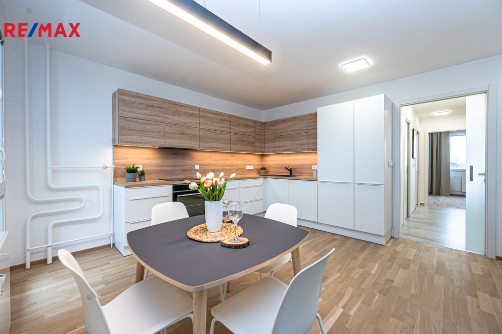 K pronájmu nabízím moderní byt o dispozici 3+kk, který se nachází v 6. patře (7. NP) udržovaného a zatepleného panelového domu s výtahem v ulici Cílkova. Byt prošel kompletní a kvalitní rekonstrukcí v roce 2023 a je proveden ve velmi vysokém standardu. Celková užitná plocha činí cca 70 m² (byt 66 m², lodžie 3 m², sklep 1 m²). Dispozice bytu - prostorný obývací pokoj s kuchyňským koutem - dva samostatné pokoje - koupelna se sprchovým koutem - samostatné WC s malým umyvadlem - komora - vstupní chodba - sklep v přízemí domu Byt má praktickou orientaci – dva pokoje jsou orientovány na východ, obývací pokoj s kuchyňským koutem na západ, což zajišťuje dostatek denního světla po celý den. Z bytu je příjemný výhled do okolí, byt je velmi světlý. Vybavení a standard - dubové třívrstvé podlahy Boen - luxusní velkoformátová dlažba a obklady - LED úsporné osvětlení v celém bytě - interiérové dveře Sapelli, většina posuvných do pouzdra, v obývacím pokoji skleněné posuvné designové dveře - nové bezpečnostní vstupní dveře - vestavná šatní skříň v chodbě Kuchyňská linka: - indukční deska a trouba Electrolux - vestavná lednice s mrazákem AEG - extra tichá myčka Bosch - kování Blum, LED osvětlení - odsavač par Faber - dřez a baterie Franke Koupelna: - sprchový kout - podlahové vytápění - pračka a sušička Samsung Všechna okna jsou vybavena žaluziemi, u menších oken jsou sítě proti hmyzu. Na oknech jsou záclony a závěsy. Další informace - byt se pronajímá bez nábytku, zůstávají uvedené vestavné prvky a spotřebiče - dům se nachází přímo u zastávky MHD Cílkova - v docházkové vzdálenosti je les a zeleň, ideální na sport a procházky - parkování je možné v okolí domu - byt je nekuřácký, vhodný maximálně pro 4 osoby Finanční podmínky - Nájemné: 29.000 Kč / měsíc - Zálohy na služby: 2.720 Kč / měsíc (upravitelné dle počtu osob) - Elektřina: aktuální záloha 1.340 Kč (převod na nájemce) - Kauce: ve výši dvou měsíčních nájmů Dostupnost Byt bude k nastěhování od 1. 2. 2026. Prohlídky budou probíhat po dohodě, pravděpodobně od 12. 1. 2026. V případě zájmu mě prosím kontaktujte, ideálně e-mailem nebo prostřednictvím formuláře u inzerce.