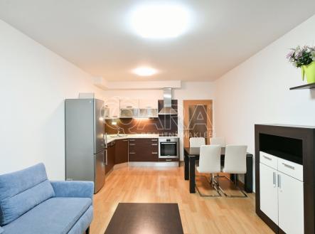 Nabídka pronájmu částečně zařízeného bytu o dispozici 3+kk s lodžií, balkonem a garážovým stáním, ul. Václava Trojana, Praha 10 – Uhříněves. Byt je umístěn ve 2.NP novostavby bytového domu z roku 2009 nacházející se na okraji městské části. Byt o celkové výměře 83 m2 (vnitřní plocha – 71 m2, lodžie – 4 m2, balkon – 5 m2) je velice dobře dispozičně řešen a tvoří jej: obývací pokoj s kuchyňským koutem, 2x ložnice, vstupní chodba, koupelna s vanou, samostatné WC a komora. Z obývacího pokoje je možný vstup na balkon, vstupem na lodžii pak disponuje jedna z ložnic. Jak lodžie tak balkon jsou orientovány stejně jako všechna okna v bytě na západ. Byt se pronajímá částečně zařízený – kompletní kuchyňská linka včetně vestavěných spotřebičů + jídelní stůl se židlemi a obývací TV stěna. V ložnici se je umístěna volně stojící šatní skříň, v předsíni se pak nachází vestavěná šatní skříň. Podlaha je v celém bytě plovoucí laminátová, v koupelně a na WC je dlažba. Vytápění zajišťuje centrální plynová kotelna v domě. Dům je vybaven výtahem. K bytu dále náleží garážové stání, které je stejně jako sklepní kóje (2,92 m2) umístěné v suterénu. Zastávka MHD je umístěna téměř u domu (cca 70 m) - 18 minut BUS na metro A – Depo Hostivař nebo 4 minuty BUS na Nádraží Uhříněves, dále pak vlakem na Hlavní nádraží (19 minut). Dopravní obslužnost pak doplňuje dobrá dostupnost na dálnici D1 a tím i na Pražský okruh, dále pak na Štěrboholy. V místě naleznete vše potřebné, přímo u domu se nachází supermarket, v centru městské částí je pošta, kavárna, bankomat a přírodní památka Obora v Uhříněvsi. Společně s nájemným se hradí měsíční poplatky ve výši 5.500 Kč + elektřina se převádí na nájemníka. Kauce ve výši jednoho nájmu, provize ve výši jednoho nájmu. Kuřáci nejsou vítáni. Volné od 1.12.2025. Pokud máte zájem o prohlídku, vyplňte prosím formulář níže, co nejdříve se vám ozveme.