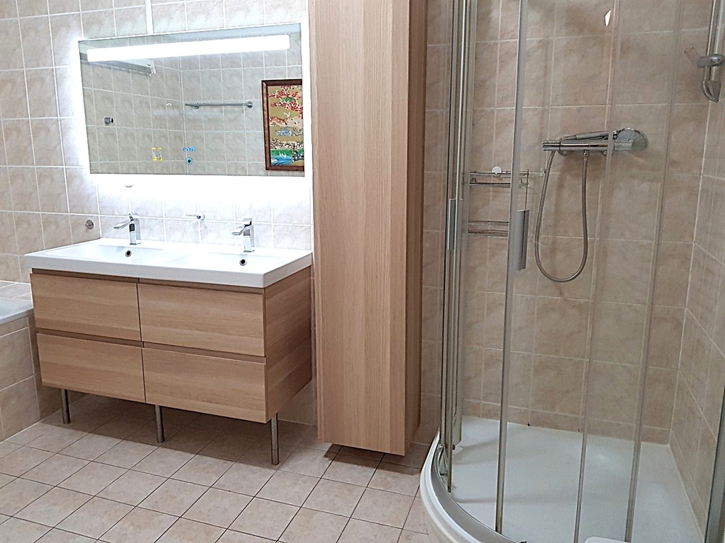 Pronájem bytu - krásný, prostorný, kompletně zařízený byt 3kk, 102 m2 s terasou cca 8 m2, komorou a sklepem cca 3 m2, Praha 8 - Libeň, ulice Nad Okrouhlíkem, 3.patro v obytném domě z r. 2005 s výtahem. Orientace bytu je na východ (obývací pokoj s kuchyňským koutem a terasa) a na západ (2 ložnice). Byt je kompletně zařízený nábytkem včetně kuchyňské linky se sklokeramickou varnou deskou, novou el. troubou, novou lednicí s mrazákem, myčkou, mikrovlnnou troubou, dále pračka, sušička a nové velkoformátové TV. Nábytek je viz foto včetně velkých vestavěných šatních skříní. V prostorné koupelně jsou 2 umývadla, vana i sprchový kout a WC. Další WC s umývadlem je zvlášť. Na podlaze je plovoucí podlaha a dlažba, v ložnici koberec. Topení je etážové - vlastní plynový kotel, který zajišťuje jak vytápění bytu, tak i ohřev teplé vody. Parkování je možné na ulici (modré zóny) nebo je v případě nabídky možnost pronajmutí garážového stání přímo v domě. K bytu dále náleží sklep, který je vhodný i na uskladnění kol. Dům se nachází ve velmi klidné a příjemné lokalitě plné zeleně. 100 m od domu je rozsáhlý lesopark Okrouhlík, který vybízí k příjemným procházkám, relaxu, ale i sportovním aktivitám. Občanská vybavenost je v místě - do 10 min chůze je obchodní centrum Ládví se supermarketem Albert a menšími obchody, restauracemi a službami. Výborná dopravní dostupnost do centra - do 10 min chůze je tram, bus a Metro C - Ládví. Byt je výhradně nekuřácký, je vhodný výhradně jen pro zahraniční klientelu a jejich rodinu nebo držitele zahraničních pasů. Domácí zvířátka nelze. Byt je volný od cca 1.2. 2026, po dohodě možná i dříve. Prohlídky jsou možné ihned. Vratná kauce je ve výši 2 nájmů bez poplatků.