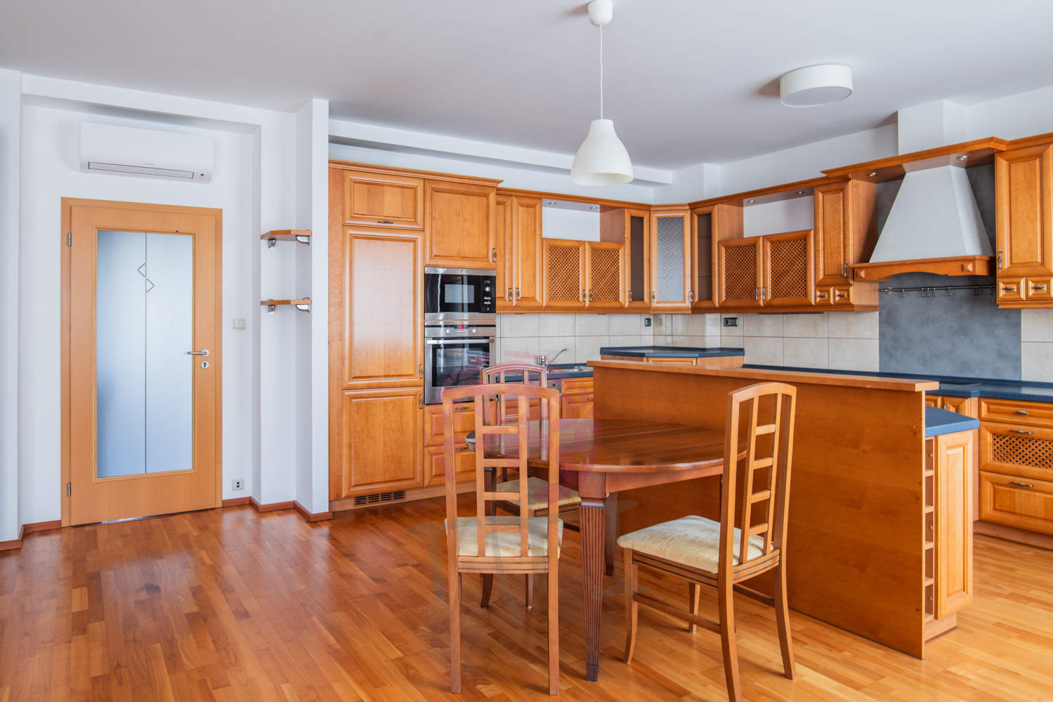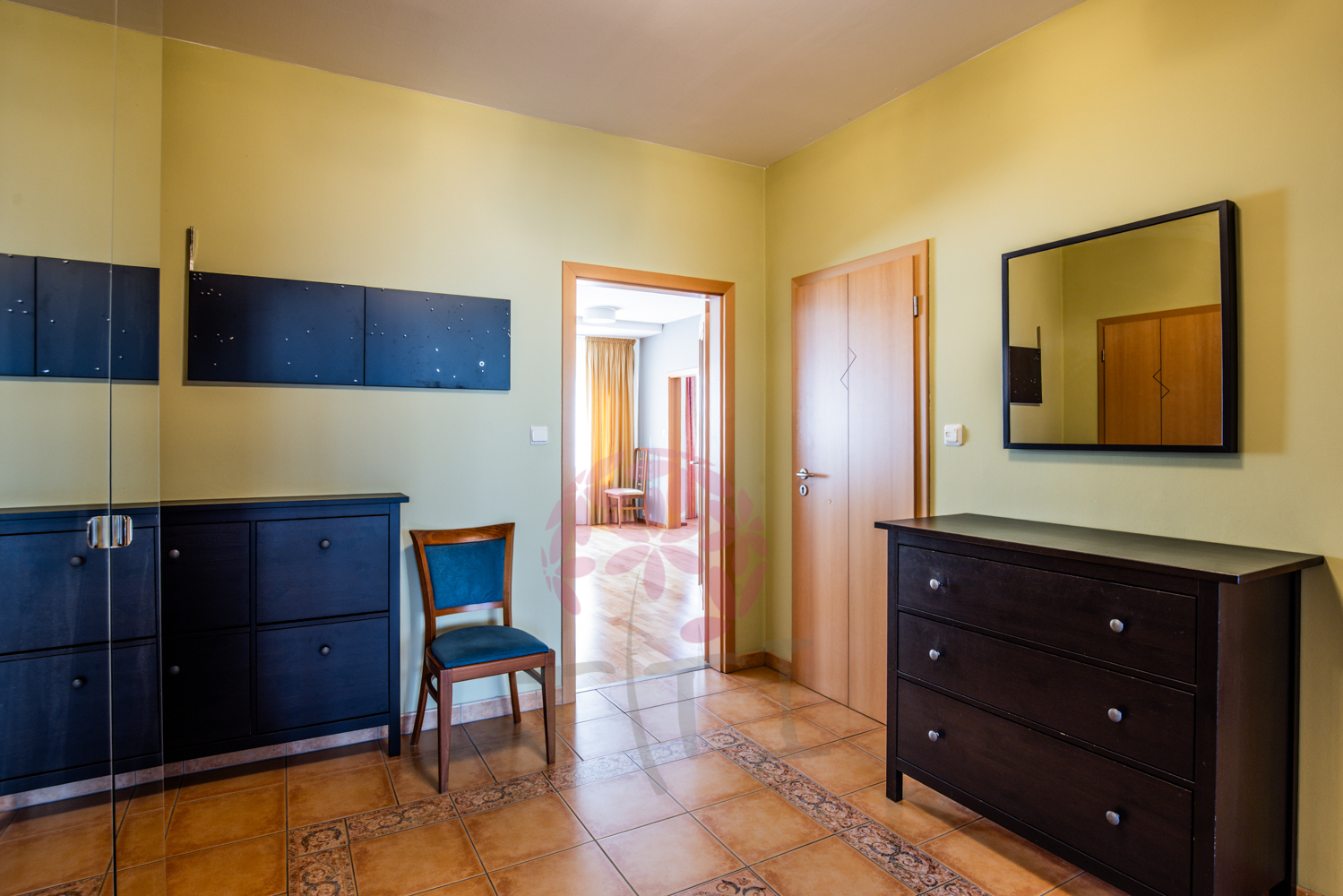 K dlouhodobému pronájmu nabízíme zcela vybavený byt, o dispozci 4+kk a dvěma koupelnami, umístěný v posledním patře, udržovaného činžovního domu s výtahem. Velmi světlý byt disponuje třemi ložnicemi, velkou kuchyni, na kterou navazuje jídelna s obývacím pokojem. Součástí jedné z ložnic je koupelna, druhá koupelna se sprchou a vanou navazuje na vstupní chodbu. vybavení bytu: - kuchyně, kompletně vybavená (lednice, myčka, sporák, trouba, mikrovlná trouba) - postel (bez matrace) - jídelní stůl a židle - šatní skříně - komora - koupelna s vanou a sprchou - samostatná toaleta - klimatizace - výtah Poplatky spojené s užíváním předmětného bytu budou vyměřeny dle počtu osob žijících v bytě.