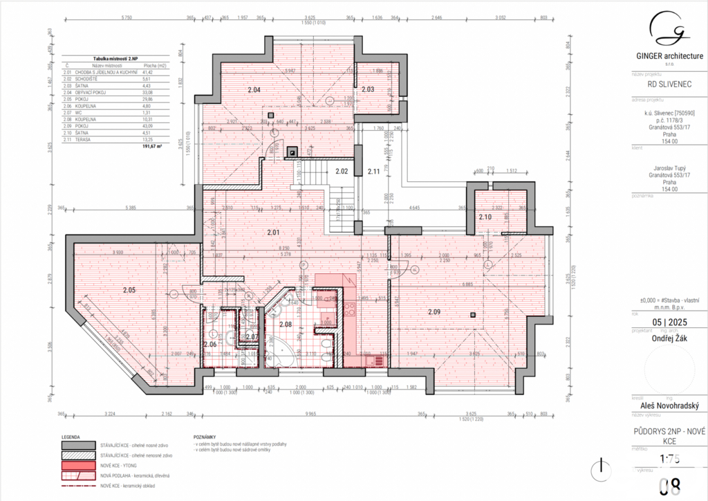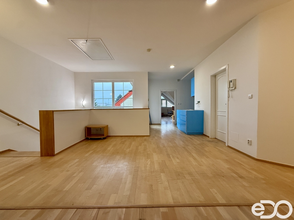 Nájemné: 43 500 Kč / měs. Poplatky: 10 900 Kč / měs. Vratná kauce: 87 000 Kč Rezervační poplatek: 43 500 Kč + DPH Prostorný podkrovní byt 4+kk v horním patře domu na klidném okraji Prahy, přitom s výbornou dostupností do centra. Slivenec patří mezi vyhledávané rezidenční lokality obklopené zelení, kde panuje klidná a rodinná atmosféra, a zároveň jste autem přes Barrandovskou spojku nebo Pražský okruh do patnácti minut na Andělu či zhruba do půl hodiny v centru města. Byt se nachází v 1. patře (2. NP) domu, který byl rozdělen na tři samostatné bytové jednotky. Jedná se o podkrovní byt o dispozici 4+kk. Díky podkrovnímu řešení je byt světlý a vzdušný, je však potřeba počítat s tím, že uvedená výměra je ovlivněna zkosenými stěnami, které ale místy snižují plnohodnotně využitelnou podlahovou plochu. Dispozičně byt nabízí tři samostatné ložnice, hlavní obytný prostor s obývacím pokojem a kuchyňským koutem, který vznikl propojením původní pracovny s chodbou. Kuchyň je řešena novou bílou kuchyňskou linkou se spotřebiči, přičemž pracovní deska je aktuálně ve fázi dodání. V bytě je terasa přístupná ze třech místností. Momentálně ještě v ostatních bytech pokračují rekonstrukce. U třech fotografií byli použity vizualizace. Byt disponuje dvěma koupelnami: – první koupelna je vybavena vanou i sprchovým koutem – druhá koupelna má samostatný sprchový kout – dále samostatné WC Vytápění je řešeno elektrokotlem s rozvodem do radiátorů, ohřev vody zajišťuje centrální zásobník. Součástí bytu je terasa: 13 m2. K bytu dále náleží sklepní prostor cca 6 m2. V bezprostředním okolí je kompletní občanská vybavenost – školy, školky, obchody i sportoviště. Nedaleko se nachází také parky Granátová, Višňovka a Chuchelský háj, ideální pro procházky, sport i relax v přírodě. Nabídka je vhodná pro zájemce, kteří hledají klidné bydlení v domě s dostupností do centra Prahy. Ozvěte se a uvidíme se na prohlídce.