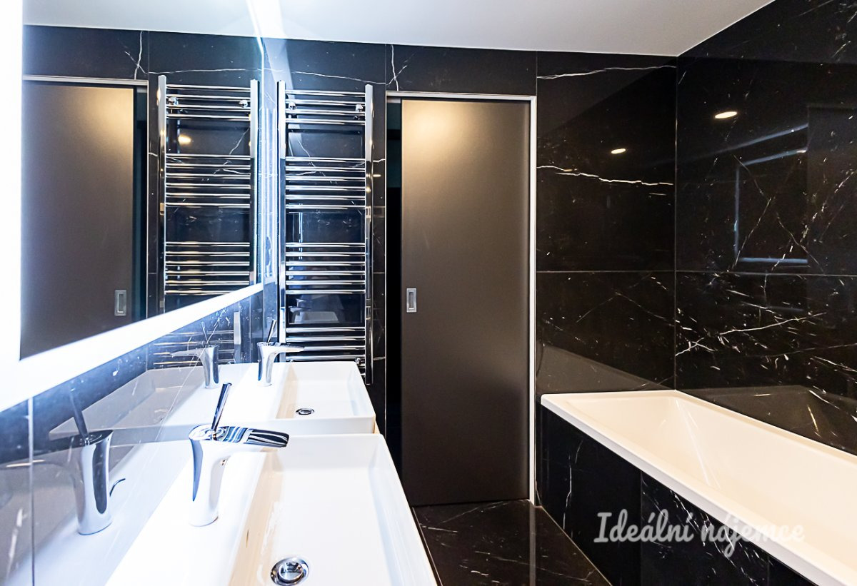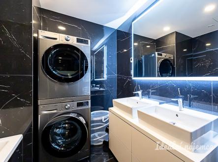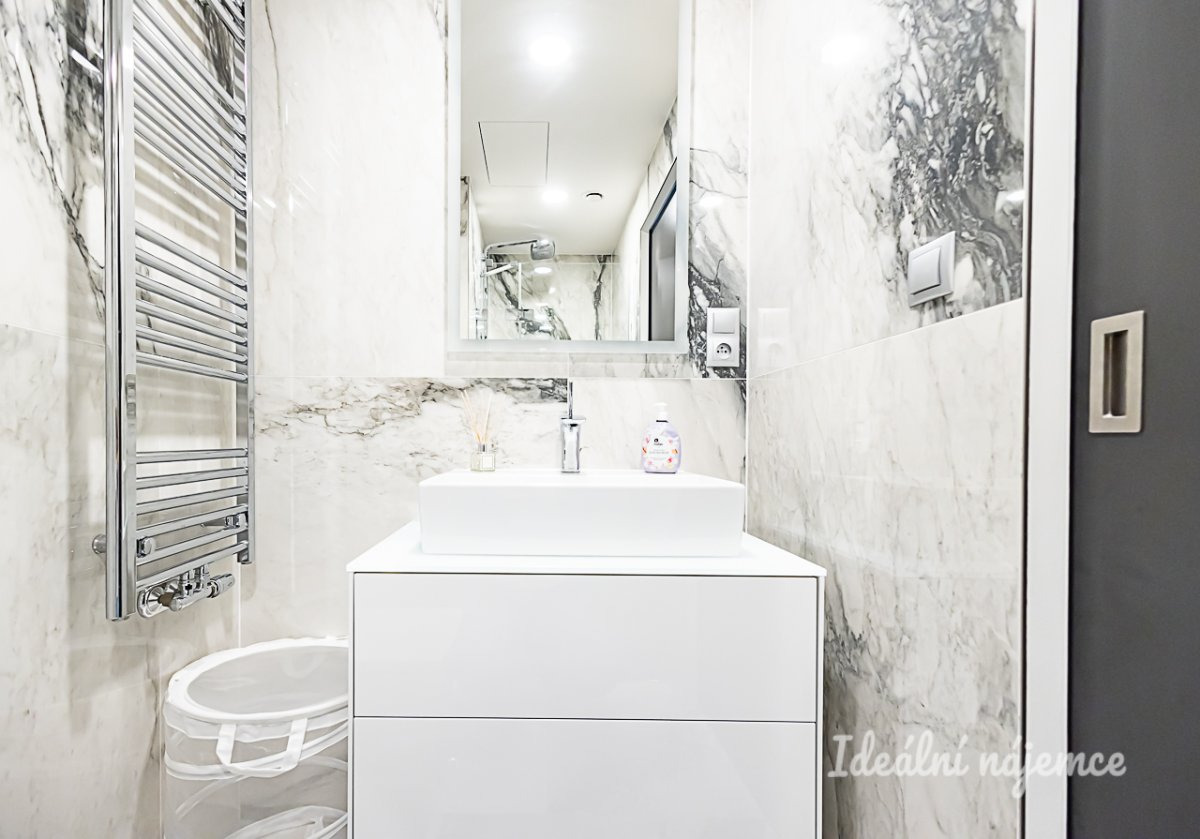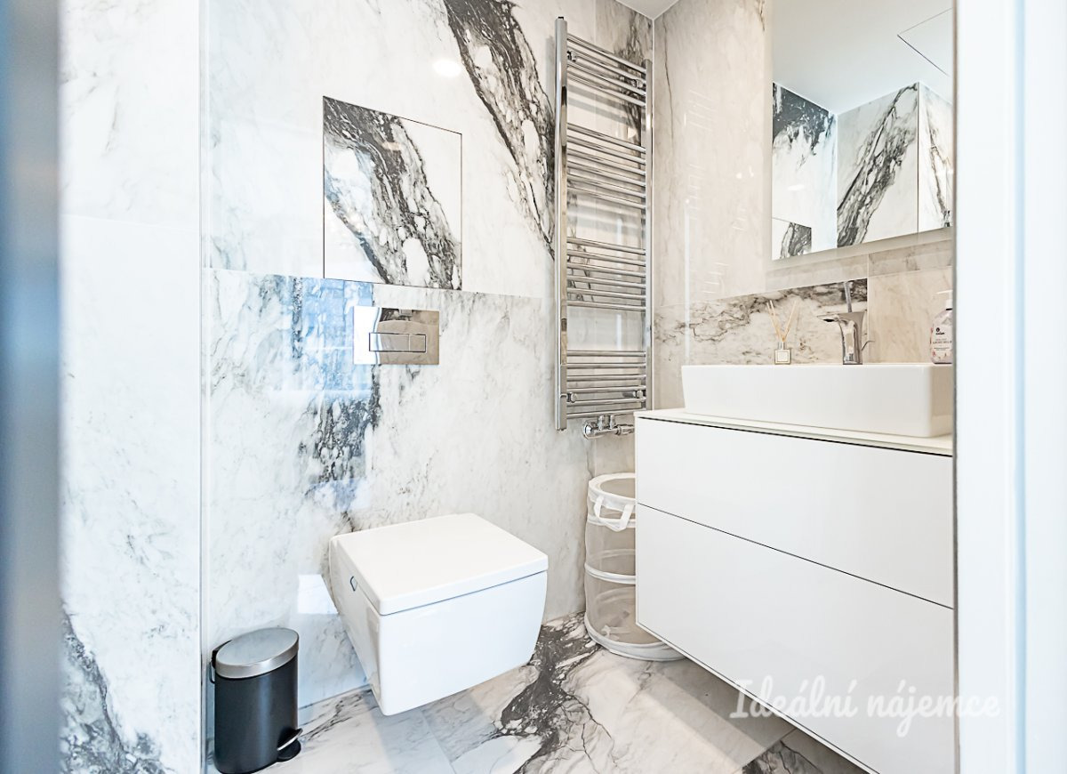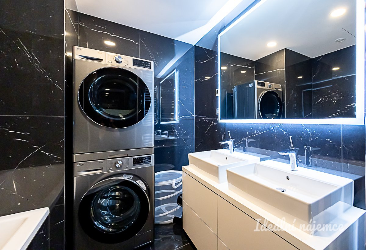 K dlouhodobému podnájmu nabízíme exkluzivní rezidenční byt 4+kk s kompletním zařízením, situovaný ve vyhledávané lokalitě Praha 9 – Libeň. Tento luxusní byt o celkové výměře 107 m² se nachází ve 13. patře moderní rezidence Harfa Design Residence. Velkým benefitem je prostorná terasa, která obklopuje značnou část bytu, a k dispozici je rovněž garážové stání. Byt je nabízen plně vybavený a připravený k okamžitému nastěhování. Kuchyně disponuje barovým posezením, lednicí s mrazákem, elektrickou i mikrovlnnou troubou, indukční varnou deskou, digestoří a myčkou. Na kuchyň plynule navazuje obývací pokoj s pohodlnou sedací soupravou, konferenčním stolkem, TV setem a jídelním koutem. V bytě jsou dále dva samostatné pokoje vybavené postelí, vestavěnou skříní a pracovním stolkem se židlí. Dominantou hlavní ložnice je luxusní manželská postel s čelem doplněná o vestavěnou skříň. Hlavní koupelna je zařízena vanou, umyvadlem, koupelnovou skříňkou a sušičkou, zatímco koupelna u ložnice nabízí sprchový kout a umyvadlo. Toaleta je samostatná. V okolí domu je k dispozici kompletní občanská vybavenost – nákupní centrum Galerie Harfa, restaurace, kavárny, poliklinika, pošta, školky a školy. Pro volný čas je ideální nedaleký Park Podviní, kam lze dojít během několika minut chůze. Lokalita se vyznačuje také výbornou dopravní dostupností, a to díky blízkým tramvajovým zastávkám i stanici metra Českomoravská (linka B). Byt je volný k nastěhování od 1.2.2026. Energetická třída: G (průkaz nedodán).