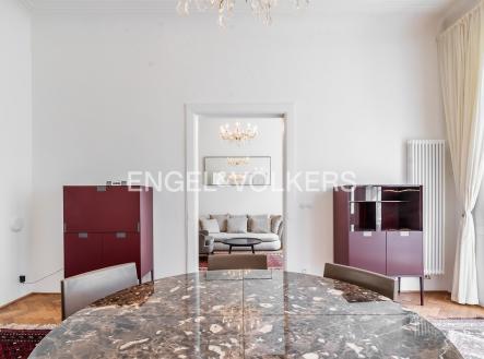 K okamžitému pronájmu Vám nabízíme tento luxusní byt o velikosti 120 m2 v Pařížské ulici. Byt prošel kompletní rekonstrukcí a nabízí vše, co můžete od exkluzivní nemovitosti očekávat včetně dřevěných parket, nábytku na míru, štukových stropů a dalších předností. Tři samostatné pokoje nabízí dostatek soukromí. Dva z nich mají vlastní koupelnu, přičemž jedna má sprchový kout a druhá vanu. Dále je samozřejmostí plně vybavená kuchyň se všemi spotřebiči, která je spojena s jídelnou a salonkem. Dále zde najdete dva balkony na kterých můžete relaxovat. Jeden z nich je situován do Pařížské ulice a druhý do klidného vnitrobloku. Byt se pronajímá jako kompletně zařízený a je připraven k Vašemu nastěhování. Lokalita disponuje veškerou vybaveností od obchodů s luxusní módou přes Staroměstské náměstí, či Vltavu v docházkové vzdálenosti a samozřejmě nespočet restaurací po okolí celého Josefova.