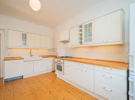 Nabízíme od 1. 3. 2026 (případně dříve – na dotaz) k pronájmu prostorný byt 5+1 ve stylové prvorepublikové vile ze 30. let ve vilové čtvrti Prahy 4 – Modřany, ulice Nečova. Ideální pro rodiny vracející se do Prahy ze zahraničí nebo pro expaty hledající autentické bydlení s charakterem. Nabídka je obzvlášť vhodná pro rodiny s dětmi díky blízkosti Prague British International School – Libuš campus. Byt má dispozici 5+1 s čistou obytnou plochou 150 m² a nabízí využitelnou půdu, sdílenou kolárnu, zastřešenou terasu, parkovací stání na vlastním pozemku a malou zahrádku na samostatném pozemku o velikosti 110 m². Vila prošla citlivou rekonstrukcí a zachovala si výrazné prvorepublikové prvky – kombinace historického šarmu s moderním komfortem. DISPOZICE: Byt je rozložen do tří nadzemních podlaží. 1. NP: Vstupní zádveří s úložným prostorem a vstupem do sklepa. 2. NP (hlavní obytné patro): Stylová kuchyň se značkovými spotřebiči a spíží, prostorný obývací pokoj s balkonem do ulice a oknem do zahrady, ložnice, koupelna s vanou, pračkou a kombinovaným plynovým kotlem, samostatné WC. 3. NP (podkroví): Prostorná obytná místnost se vstupy do dvou menších ložnic a koupelny s WC. Zákoutí nabízí další prostor na spaní pro třetí dítě nebo návštěvy. Součástí je nika pro uložení šatstva. Mezipatro: Zastřešená terasa se sedacím nábytkem – ideální pro ranní kávu nebo večerní relax. Půda: Pochozí, určená k uložení věcí, přístupná dřevěným schodištěm. TECHNICKÉ VYBAVENÍ: Dům je napojen na všechny inženýrské sítě včetně optického vysokorychlostního internetu (ideální pro home office). Byt je aktuálně vymalován na bílo, obytné místnosti jsou částečně vybaveny nábytkem. IDEÁLNÍ PRO: • Rodiny vracející se do ČR ze zahraničí • Expat rodiny s dětmi • Zaměstnance mezinárodních firem • Ty, kdo oceňují autentické bydlení s historií a charakterem LOKALITA A DOSTUPNOST: Tylova čtvrť nabízí výbornou dopravní dostupnost – tramvaje směr centrum přes Braník, autobusy na metro C (Budějovická, Kačerov) i metro B (Smíchovské nádraží). Občanská vybavenost: Školy, školky, mezinárodní školy (Prague British International School – 5 min autem), poliklinika, obchodní centra, supermarkety (Billa, Kaufland, Lidl). Příroda a sport: Modřanská rokle, Kunratický les, cyklostezky, sportovněkulturní zóna v Braníku s restauracemi. FINANČNÍ PODMÍNKY: Nájemné: 42 000 Kč/měsícPoplatky: 8 500 Kč/měsíc Kauce: 84 000 Kč Provize: 42 000 Kč + DPH Prohlídky možné po dohodě. Více informací na prohlídce.