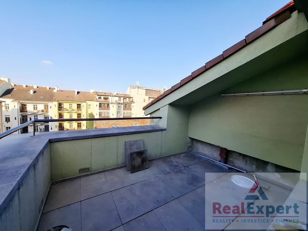 Nabízíme k pronájmu prostorný mezonetový byt o velikosti 5+kk/Terasa, o celkové ploše 166 m2, situovaný v 5. NP (poslední patro) s výtahem v bytovém domě v Praze 2 - Vinohrady, ul. Máchova. Ve spodním patře bytu je velký obývací pokoj s kuchyňskou linkou, dvě ložnice, prádelna, koupelna s vanou, sprchovým koutem a WC, dále druhé samostatné WC a prostorná chodba s úložnými prostory. V horním patře jsou dvě samostatné ložnice. Kuchyňská linka je vybavena vestavnými spotřebiči: varná deska, pečící trouba, digestoř, myčka, mikrovlnná trouba. Terasa je orientovaná do klidného vnitrobloku. Topení v bytě je ústřední (vlastní elektro-kotel). Lokalita se skvělou občanskou vybaveností - obchody, školy, školky, lékaři atd. i skvělým spojením do centra Prahy - tramvají cca 5 min. Doporučujeme.