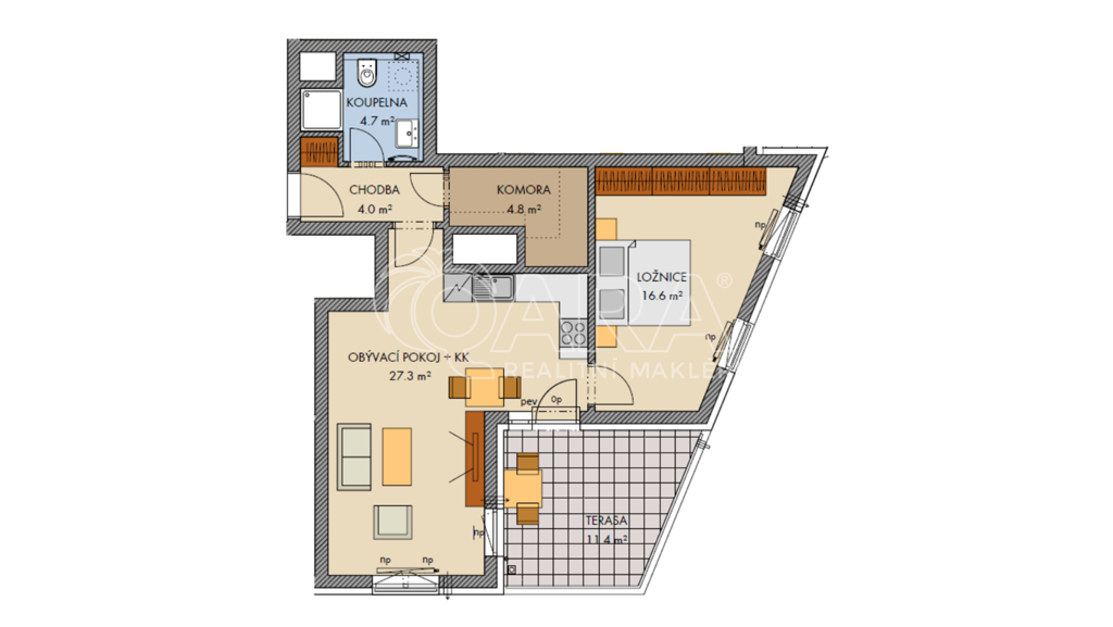 Světlý a prostorný byt, který má 61m2 + krásná terasa s výhledem z 6 podlaží má 11,4m2. ✔️ Byt je volný od 7.3.2026. ✔️ Nová lokalita Britská čtvrť se nachází přímo u stanice metra Stodůlky, skvělá poloha s nájezdem na okruh v blízkosti Metropole Zličín, dobrou dostupností na letiště Václava Havla. ✔️ Příjemná orientace bytu - ložnice na východ, obývák na jih a rohová terasa na jih a východ. ✔️ V bytě je prostorná komora/šatna. ✔️ K bytu je možné si pronajmout parkovací stání v garážích domu (+ 1.600Kč / měsíčně). ✔️ Moderní komplex je udržovaný a čistý a přináší komfortní bydlení. ✔️ Pouhých 5 minut chůze dojdete k metru, autobusu, restauraci, DM drogerii. 10 minut chůze je pošta a například restaurace. ✔️ Do Metropole Zličín a Ikea se dostanete za 8 minut jízdy vozem. Budeme se těšit na prohlídce. ✔️ Cena nájmu je 25.000Kč + záloha na služby 5.500Kč + záloha na elektřinu (převádí se na podnájemce). ✔️ Garážové stání + 1.600Kč (volitelné). ✔️ Kauce 25.000Kč. ✔️ Provize pro RK je 26.000Kč + 21%DPH. Volejte prosím Markéta Beránková 603 459 538.