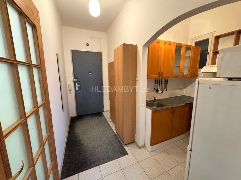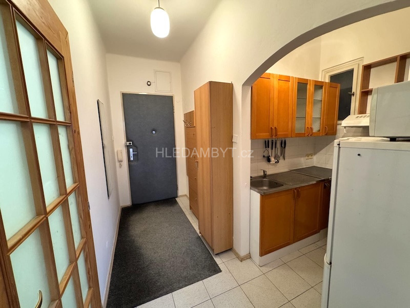 Pronájem bytu ve velice dobrém stavu, který tímto nabízíme je k nastěhování ihned a lze dlouhodobě. Jedná se o byt v pátém patře cihlového domu s výtahem, okna orientována do klidné ulice na západní stranu. Je zde kuchyňská linka, elektrický sporák, lednice, mikrovlnná trouba, pračka, postel, noční stolky, jídelní stůl, židle, nábytková stěna, knihovna, komoda a šatní skříň. Na podlahách dlažba a parkety. Koupelna zděná se sprchovým koutem a WC dohromady. Vhodné pro 2 osoby. MHD: 2 minuty chůzí na metro Flora. Nábytek lze odstranit. Umístění na mapách je pouze orientační.
