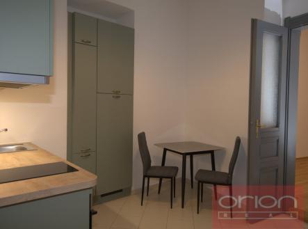 Nabízíme k pronájmu zrenovovaný byt v 1. patře secesního činžovního domu. Byt o dispozici 1+1 má plochu 47,3 m² a nabízí předsíň, kuchyň s novou kuchyňskou linkou a spotřebiči (lednice s mrazákem, myčka nádobí, varná deska a trouba) a jídelním stolem se židlemi, dále velký pokoj (23m²), koupelnu se sprchovým koutem a toaletou. V bytě jsou dvě komory, v jedné je umístěn plynový kotel a pračka se sušičkou, druhou lze využít jako šatnu. Byt má vysoké stropy, v pokoji je dubová podlaha, v ostatních místnostech je dlažba. Dům je umístěn v oblíbené části Praha 3 - Žižkov, jen pár minut chůze od Náměstí Jiřího z Poděbrad a od parku Riegrovy sady. V místě je veškerá občanská vybavenost: obchody, restaurace, bary, pekárny, v blízkosti je také nákupní centrum Flóra. V krátké pěší dostupnosti je stanice metra Jiřího z Poděbrad, stanice tramvaje Olšanské náměstí anebo Vinohradská.