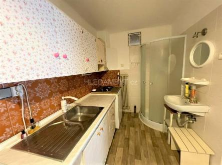 Pronájem bytu Praha 4 Michle je 2+kk ve 2 - posledním patře činžovní vily. MHD: 4 minuty k metru Kačerov nebo Budějovická. Zařízení: kuchyňská linka, vařič, lednice, postel, jídlení stůl, nová sedačka, nábytková stěna, šatní skříň. Toaleta v bytě. Prádelna v domě. Na podlaze koberec, pvc. Vhodné pro maximálně 2 osoby. Neprůchozí pokoje. Koupelna v bytě není - sprchový kout i umyvadlo umístěno v kuchyni.