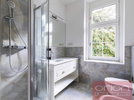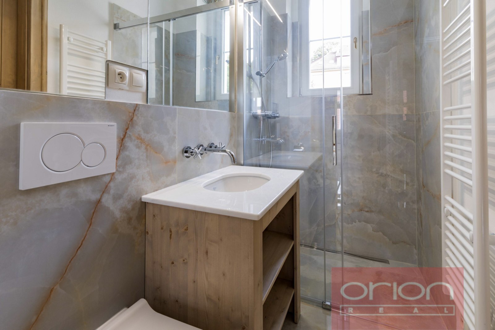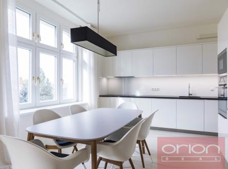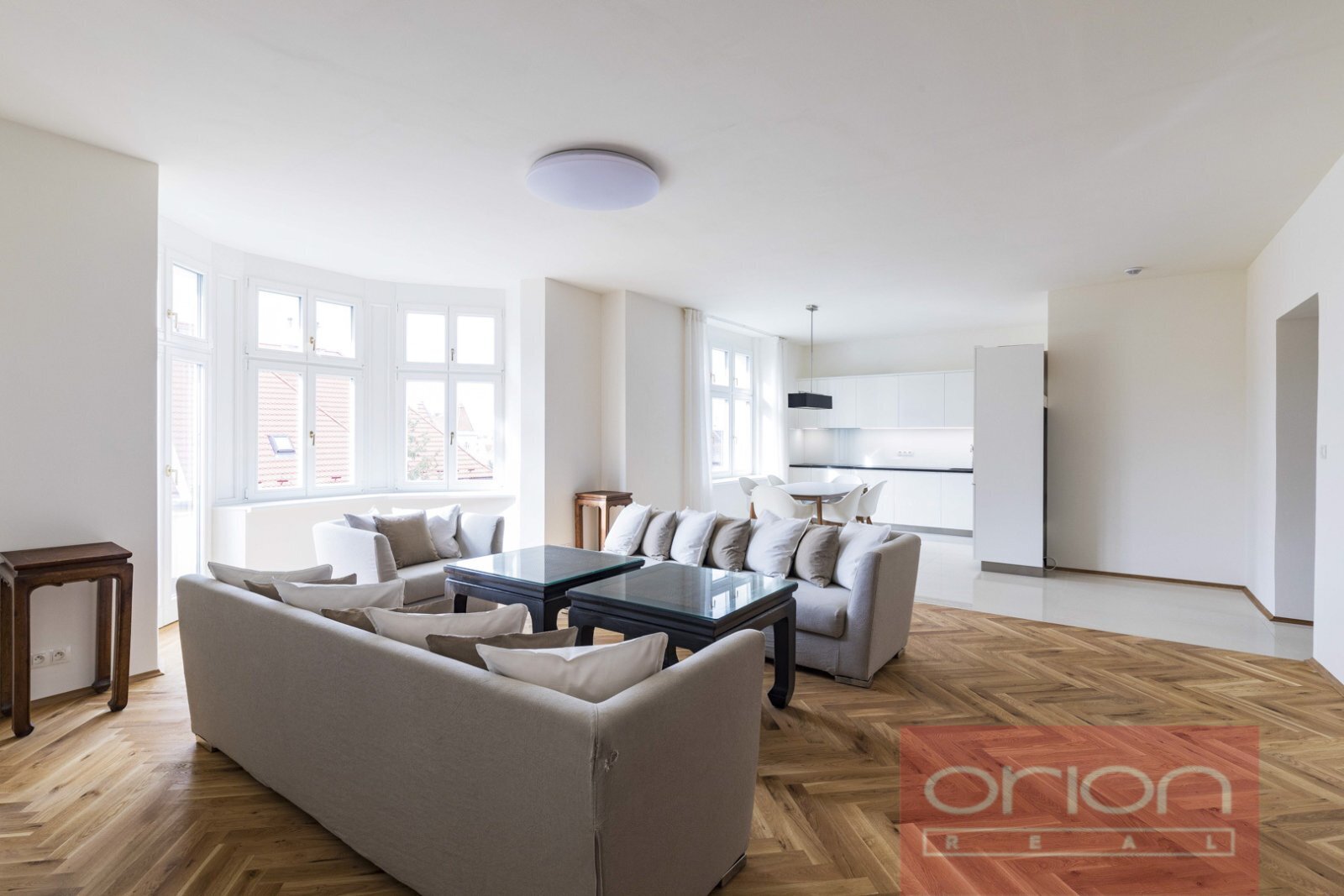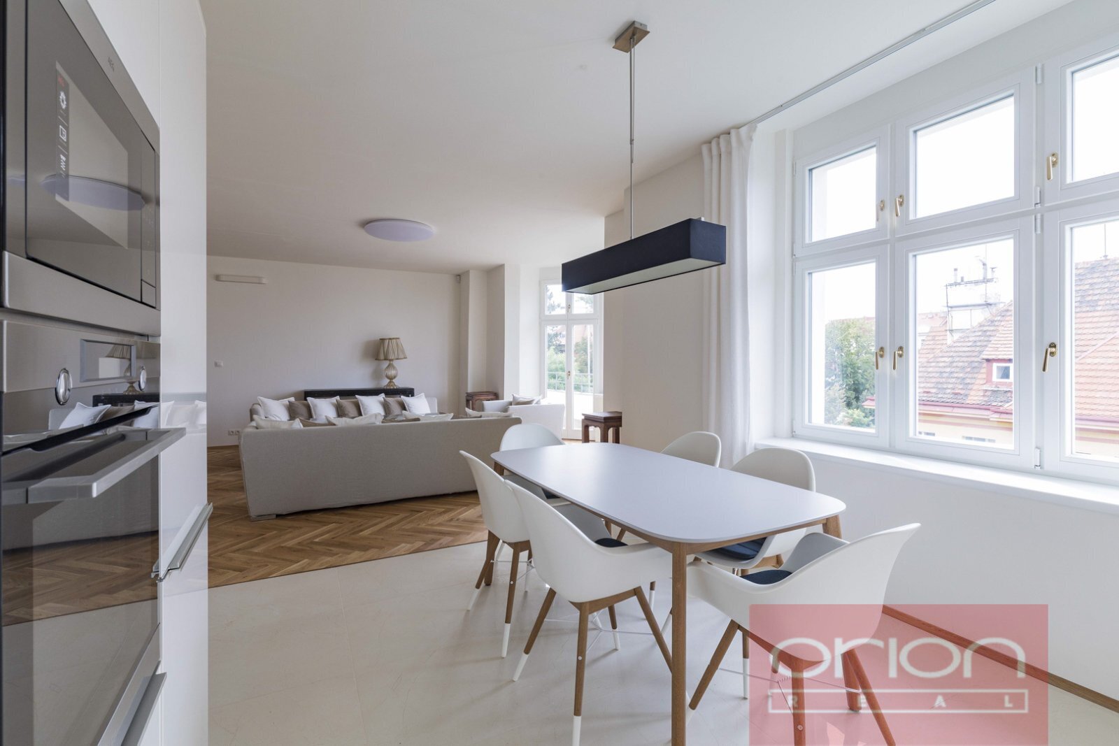 Nabízíme k pronájmu kompletně zrekonstruovaný, klimatizovaný byt v 1. patře rodinné vily se zahradou ve vyhledávané lokalitě Praha 10 - Vinohrady. Luxusní zařízený byt 4+1 má plochu 120 m2 a nabízí vstupní halu, plně vybavenou moderní kuchyň s jídelním koutem, prostorný a světlý obývací pokoj s velkými okny, s arkýřem a se vstupem na jižně orientovanou terasu o velikosti 10 m2, 3 ložnice, 3 koupelny (vana, sprchový kout, bidet, umyvadlo)), komoru. K vybavení bytu patří dřevěné parkety a mramorová dlažba s podlahovým vytápěním, pračka se sušičkou, klimatizace, alarm a samostatný plynový kotel. Dům se nachází v klidné vilové čtvrti, pouze pár kroků od tramvajové zastávky, 15 minut chůze ke stanici metra a nákupnímu centru Flora. Lokalita s velice dobrou dopravní dostupností MHD i autem, s veškerou občanskou vybaveností. V blízkém okolí množství obhodů, restaurací, bister, kaváren, nedaleko parků a městské zeleně. Preferovaná platba nájmu v EUR .