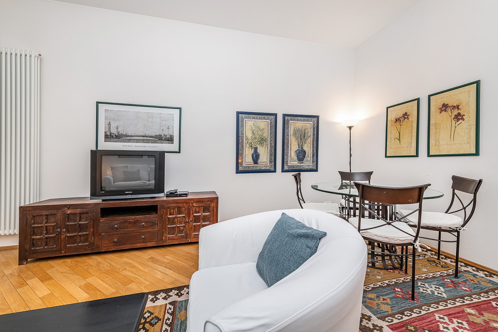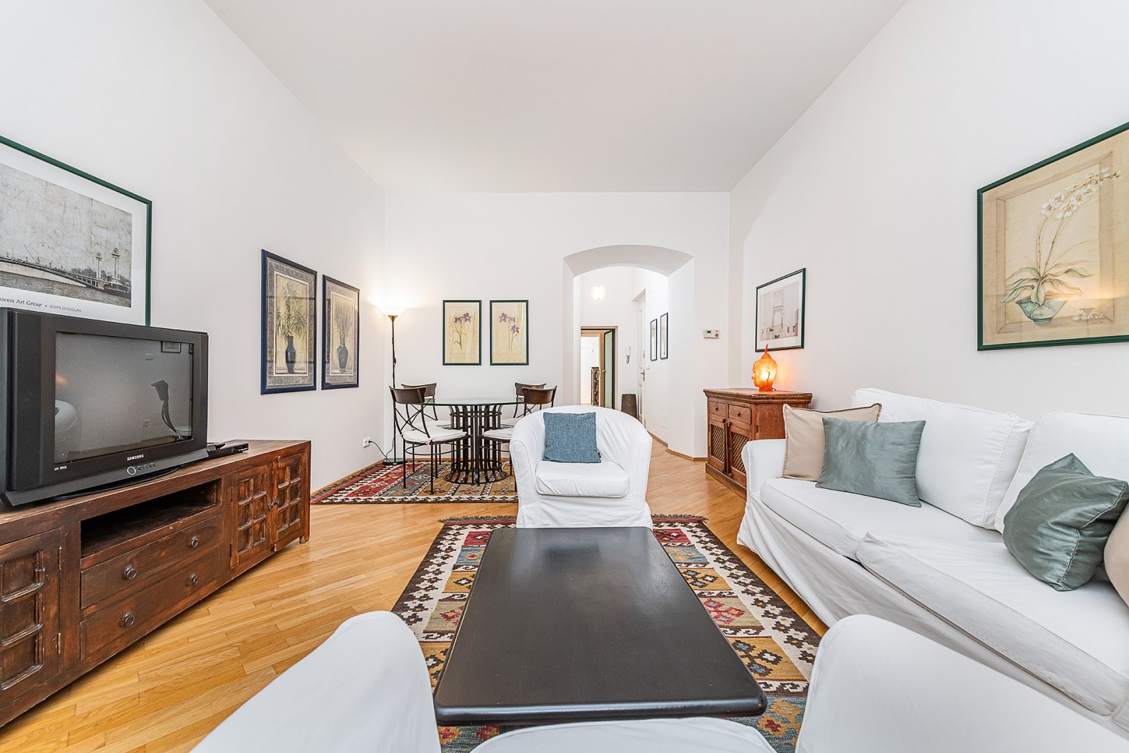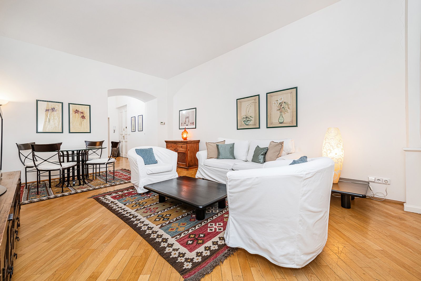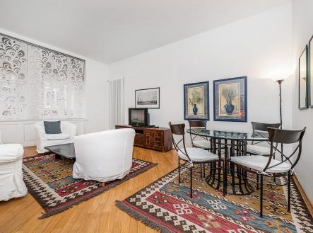 Nabízíme k pronájmu zařízený byt 2+1 (54 m2) se soukromou zahrádkou (6 m2) v přízemí domu v novobarokním slohu, který byl citlivě zrekonstruován se zachováním původních stavebních prvků. Dům se nachází v oblíbené rezidenční čtvrti Prahy 2 - Vinohrady, v blízkosti parku Riegrovy sady, naproti Vinohradskému divadlu, 5 minut pěšky od Václavského náměstí a Národního muzea. Byt nabízí vstupní halu, obývací pokoj spojený s jídelnou, plně vybavenou kuchyň, ložnici, šatnu, koupelnu s vanou, toaletou a bidetem, komoru. K vybavení bytu patří masivní parkety a dlažba na podlahách, satelit, internetové připojení. Nájemníci mohou využít společnou zahradu ve dvoře domu rozkládající se na dvou úrovních s pečlivě udržovanou zelení a kašnou. Zeleň spolu s osvětlenou kašnou vytvářejí působivou atmosféru, a to zejména v noci. Vyhledávaná lokalita Vinohrady, veškerá občanská vybavenost v místě. Výborné dopravní spojení MHD a autem, stanice metra a tramvají na náměstí Míru pár kroků od domu. V okolí je množství restaurací, kaváren, lokálních obchodů.