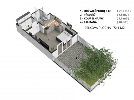 V exkluzivním zastoupení vám nabízíme k pronájmu přízemní bytovou jednotku s předzahrádkou v Praze Letňanech. Bytová jednotka 1kk má podlahovou plochu 34,5 m2 a náleží k ní praktická předzahrádka o velikosti 40m2. Jednotka se sestává z obývacího pokoje s kuchyňským koutem (22m2), předsíně (5,9m2), koupelny s WC (4m2). K jednotce dále náleží sklepní kóje v 1PP o velikosti 2,6m2. Bytová jednotka je kompletně nově zrekonstruovaná. Byt je vybaven novou kuchyňskou linkou s myčkou, digestoří, horkovzdušnou troubou, mikrovlnnou troubou a lednicí s mrazákem. V koupelně je k dispozici pračka i sušička. V předsíni je pak instalována velká vestavěná skříň s mnoha úložnými prostory. Byt se nachází v klidné části a díky svému umístění v srdci Letňan máte vše po ruce. Skvělá dostupnost na metro linky C, přes několik autobusových linek. V blízkém okolí leží škola, obchodní centrum, aquacentrum, kino, krásné dětské hřiště a mnoho dalšího. Letňany jsou okrajem Polabské nížiny plné zeleně, tímto se hodí k projížďkám na kole, procházkám a dalším sportovním a volnočasovým aktivitám. Byt je vytápěn dálkovým teplem pomocí výměníkové stanice v domě. Poplatky jsou 4.100 Kč měsíčně + zálohy na elektřinu 1.000 Kč měsíčně (převod smlouvy na nájemce). PENB štítek B. Nájemné je 16.000 Kč + služby + elektřina. Zúčtovatelná kauce 25.000 Kč. Provize realitní kanceláře s kompletními službami je 20.000 Kč + DPH. Majitel požaduje pojištění odpovědnosti nájemce, které pro vás zajistíme. Prohlídky jsou možné kdykoliv po předchozí domluvě i o víkendech. Preferujeme spolehlivého nájemníka, pro dlouhodobý nájemní vztah. Byt je připraven k nastěhování od 15.12.2025.