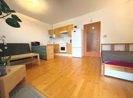 Nabízíme pěkný část. zařízený byt o velikosti 1+k.k./ Terasa cca 55m2. Byt se nachází ve 2.patře s okny situovanými na jih do zeleně. Kuch. linka vybavená spotřebiči (varnou deskou, el. troubou, lednicí s mrazákem). Koupelna s rohovou vanou a toaletou dohromady, přípojkou na pračkou. Krytina v pokoji plovoucí dřevěná podlaha a v předsíni dlažba. V bytě je prostorná komora - šatna. Nábytek (rozkládací pohovka, konferenční stolek, jídelní stůl a židle, zásuvková skříňka, v předsíni šatní skříň a předsíňový věšák). Ostatní vybavení je možné ponechat po dohodě se současným nájemcem. Bezpečnostní dveře, alarm. Nájem 17.000,-Kč + služby 3000,-Kč/ 1os., 4000/ 2os. + elektřina. Kauce 34.000,-Kč + Provize ve výši jednoho nájmu + 21% DPH. V blízkosti nákupního centra Hostivař a lesoparku. Dobrá dostupnost 3 min bus, tramvaj, metro 10min. Velmi pěkné bydlení. Pouze pro klienty z ČR a ze SR. K nastěhování od března 2026.