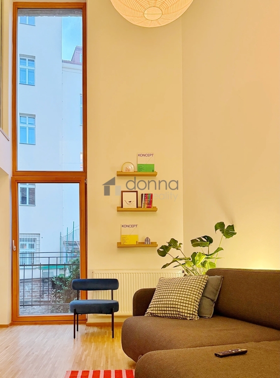 Nabízíme pronájem designového, zařízeného bytu 3+1, o ploše 90m² s balkonem, ve 2. podlaží cihlového domu s výtahem, ulice Milíčova, Praha 3 - Žižkov. Byt má 2 samostatné ložnice, koupelnu s vanou a toaletou, plně vybavenou kuchyň, obývací pokoj s pracovním místem, gauč, jídelní stůl, Smart TV, PS4, je kompletně zařízený nábytkem a spotřebiči. Duplex s 5m stropy (vestavěné patro). K dispozici parkovací stání. 5 minut pěšky od Hlavního nádraží, 10 minut od centra a parků. Tichý dvůr, plno světla, ideální pro práci i odpočinek. Volný ihned k nastěhování. Pronajímatel si vyhrazuje právo výběru nájemce.