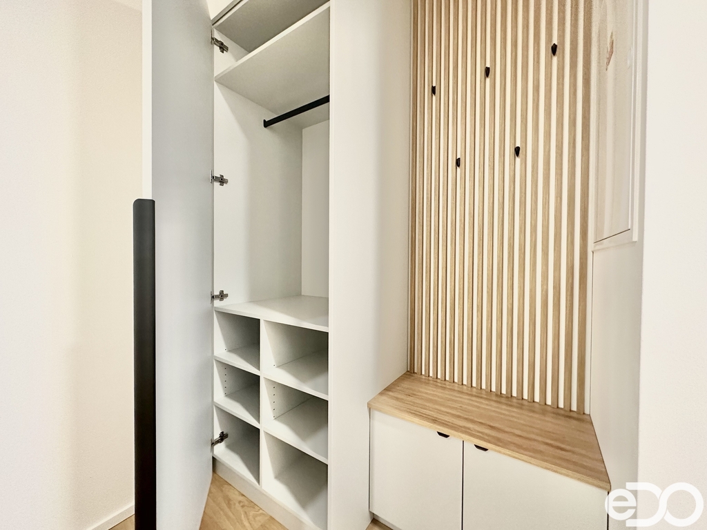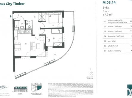 Nabízíme Vám k dlouhodobému pronájmu moderní byt 3+kk 110,7 m² s prostorným balkonem a garážovým parkovacím stáním, nacházející se v projektu Arcus City TIMBER – nejnovější a nejudržitelnější etapě prestižního developerského projektu Arcus City v pražských Stodůlkách. Rezidenční dům TIMBER je první svého druhu v ČR – kombinuje skelet z recyklovaného betonu s masivními CLT panely z certifikovaného dřeva. Stavba vyniká vysokým standardem provedení s důrazem na ekologii, udržitelnost a zdravé bydlení, což potvrzuje i cílená certifikace BREEAM Excellent. Bytový dům je tedy díky použitým technologiím jako jsou tepelná čerpadla či FVE velice úsporný na provoz. Bytová jednotka o celkové užitné ploše 110,7 m² se nachází v 3. podlaží budovy a je zcela nová, dosud neobývaná. Užitná plocha bytu, tedy plocha obytných místností uvnitř vnějších stěn nemovitosti, je 68,7 m². Skládá se z chodby s novou vestavěnou skříní na míru, dvou ložnic vč. jedné další vestavěné skříně, obývacího pokoje s novou kuchyní na míru, koupelny se sprchovým koutem a samostatného WC. Ze všech pokojů je možný vstup na krytý balkon (36,7 m²). Byt je orientovaný na jihovýchod. Kuchyně je vybavena spotřebiči značky Brandt – indukční varná deska s digestoří, myčka, mikrovlnná trouba, elektrická trouba a lednice s mrazákem. Dále je v kuchyni vzhledem k dispozici bytu instalována i vestavěná pračka zn. Kluge. K bytu náleží zděný sklep (5,3 m²) a garážové parkovací stání (s možností využití wallboxu). Byt dále disponuje moderním smart home systémem Loxone, který umožňuje mimo jiné inteligentní ovládání venkovních žaluzií, regulaci podlahového vytápění a chlazení v každé místnosti či monitorování spotřeby vody a energie. Lokalita: Projekt se nachází na pomezí městských částí Stodůlky a Řeporyje, které jsou vyhledávanými klidnými a malebnými čtvrtěmi. V bezprostředním okolí lze najít veškerou občanskou vybavenost. Atraktivnost lokality je zvýšena blízkostí jednoho z největších OC v Praze – Metropole Zličín, nebo rovněž Golf Clubu Praha. K relaxaci a sportovnímu vyžití lze využít bohatou okolní zeleň – biopark Řepora nebo Prokopské a Dalejské údolí. Doprava: Pouze pár kroků od bytového domu na náměstí Arcus City je umístěna zcela nová zastávka, ze které Vás autobus doveze za minutu k metru stanice Stodůlky či Luka. Autem je oblast také dobře dostupná. Projekt se nachází v blízkosti Pražského okruhu, do centra Prahy nebo na letiště Václava Havla se dostanete za 15 min. Jde o ideální byt jak pro jednotlivce, tak pro pár či rodinu, bez zvířat a pro nekuřáky. Je k dispozici ihned. Nájemné zde činí 37 500 Kč plus zálohové platby vč. elektřiny 8 000 Kč. Energie se nepřevádí. Celkem je tedy nájemné vč. záloh 45 500 Kč. Vratná kauce je ve výši jednoho nájmu bez poplatků. Provize je ve výši jednoho a půl měsíčního nájmu bez poplatků. V případě zájmu o prohlídku či více informací mne neváhejte kontaktovat. Rád Vás uvidím osobně přímo v bytě či v rámci videoprohlídky z pohodlí Vašeho domova.