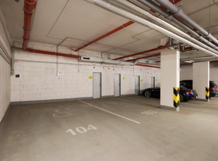 Pronájem garážového stání a sklepní kóje v novostavbě, Vojenova ulice, Palmovka