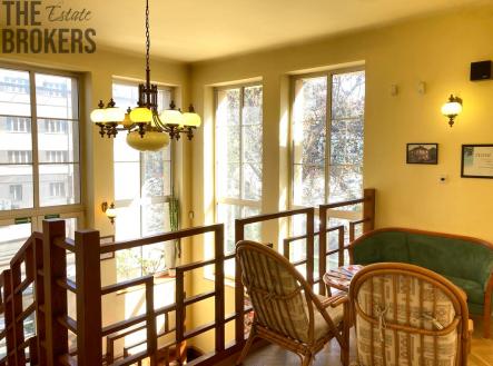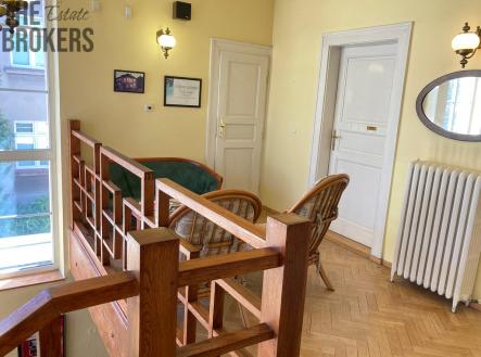 Nabízíme k pronájmu zrekonstruované nebytové prostory v prvorepublikové vile z roku 1929 o velikosti 100 m2, které jsou ideální pro kancelářské využití. K pronájmu jsou prostory: 1) ve 2. NP s reprezentativní stylovou halou a třemi samostatnými kancelářemi (33 m2, 20 m2, 18 m2), kuchyňkou, WC a ve 3.NP pokojem (18 m2), sprchou a skladem. Tato varianta je k pronájmu za 40 000 Kč + náklady na energie, vratná kauce je 80 000 Kč nebo: 2) ve 3. NP čtyři kanceláře (28 m2, 20 m2, 16 m2,14 m2) se samostatným vstupem z ulice s kuchyňkou, sociálním zázemím, skladem a terasou. Pronájem těchto prostor je za 35 000 Kč + náklady na energie, vratná kauce je 70 000 Kč. K oběma variantám nájmu patří i dvě parkovací stání na pozemku za budovou a možnost parkování pro návštěvy firmy. Kanceláře jsou klimatizované s výborným technickým zabezpečením, internetovým připojením a ostrahou 24 hod, poskytují tedy komfortní pracovní prostředí. Tyto krásné reprezentativní prostory jsou ideální pro všechny, kteří hledají pro svoji firmu odpovídající sídlo. Vítání jsou právníci, projektanti, stavební a IT profese. Nabízíme možnost spolupráce a sdílení některých služeb s firmou Alkom Security, jež má v této vile své sídlo.