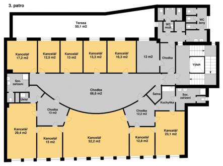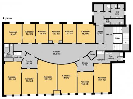 Realitní společnost GEPADR nabízí k pronájmu kanceláře o celkové ploše 2169m2 v pěti podlažích v domě v ul. Na Příkopě 29, Staré Město. Prostory jsou vhodné i pro školy. Je možné pronajmout patra i jednotlivě. 1. patro - 461m2, 12 místností od 10m2 do 62m2, 2x toalety, kuchyňka, skládek 2. patro - 442m2, 9 místností od 17m2 do 38m2, 2x toalety, kuchyňka, 3 místnosti bez oken 3. patro - 460m2 (terasa), 11 místností od 13m2 do 52m2, 3x toalety, kuchyňka, skládek 4. patro - 400m2 , 12 místností, 4x toalety, kuchyňka, 2x skládek 5. patro - 404m2 + terasa 26m2, 11 místností od 12m2 do 30m2, 5x toalety, 2x kuchyňka, skládek více viz. plánky. Vytápění je řešeno plynovým kotlem, je zde instalována klimatizace, EPS a EZS, výtah, k dispozici je ostraha 24/7. Jedná se o podnájem od České spořitelny od 1.9.2026 do 30.6.2029 s možností pokračování v nájmu (dle dohody s majitelem). Cena podnájmu do 30.6. 2029 činí 11,36 EUR/m2/měsíc. Více informací na uvedených kontaktech.