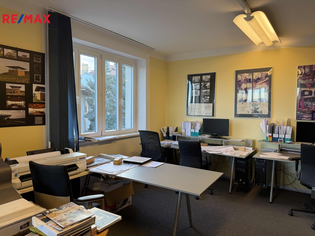 V současnosti architektonický ateliér, kde pracují čtyři architekti, nabízí ve spolupráci s majitelem nemovitosti pronájem části ateliéru – pracovny o velikosti 35,5 m² (3–5 pracovních míst). Prostor se nachází ve VIP lokalitě s panoramatickým výhledem na celou Prahu a má charakter rodinného domu. Ateliéry jsou umístěny ve třetím nadzemním podlaží. Ideální pronajímaná část zahrnuje ateliér o velikosti 35,5 m² a podíl 17 m² na společných prostorech a konferenční místnosti, celkem tedy 52,5 m². Cena nájemného činí 13 000 Kč měsíčně + zálohy na energie (voda, topení a ostatní služby) ve výši cca 2 000–3 000 Kč dle dohody s majiteli. Parkování je možné v modré zóně, k dispozici je také jedno volné parkovací místo přímo před objektem. Autobusová zastávka se nachází 50 m od branky ateliéru. Výborné spojení na metro a tramvaj – stanice Radlická a Anděl. Součástí pronájmu jsou společné sdílené prostory: vstup, čajová kuchyňka / archiv, WC s umyvadlem a jednací–konferenční místnost s velkoplošnou projekcí DELL. K dispozici je síťová tiskárna BIZHUB C458 Konica Minolta (barevná, formát A3) a plotr HP (barevný, šířka role 60 cm).