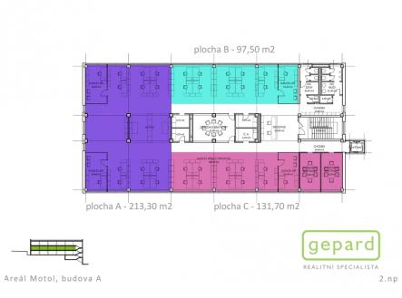 Společnost Gepard Reality Vám nabízí k dlouhodobému pronájmu kancelářský prostor nacházející se v komplexu ENERGIE v klidné lokalitě u Plzeňské ulice v městské části Praha 5 - Motol. Nabízený prostor o rozloze 131,70 m2 zaujímá část 2. nadzemního podlaží jedné z hlavních budov komplexu. Dispozice je uvedena v přiloženém půdorysu (plocha C). Vybavení je znázorněno na fotografiích. Nájemce může využívat společné prostory: zasedací místnost (23,20 m2), kuchyňku (5,70 m2), toalety (34,90 m2). Poplatek za využívání společných prostor činí 8.655,- Kč. Dále je možné pronajmout sklady (2x4,3 m2 a 1x5,70 m2) za stejnou cenu na m2 jako kanceláře a parkovací stání za poplatek 2.500,- Kč měsíčně za osobní vozidlo. Recepce je v provozu 24 hodin. V komplexu je možné využít konferenční sál (kapacita až 150 míst) a služby restaurace na snídaně a obědy (kapacita až 114 míst) a také služby hotelu. Odhad provozních nákladů bude upřesněn. Vratná kauce je stanovena ve výši dvou měsíčních nájmů. Nájemce nehradí provizi. Lokalita poskytuje velmi dobré dopravní spojení. Zastávky MHD jsou vzdálené 8 minut pěšky od komplexu. Autobus na metro linky A Nemocnice Motol jede 2 minuty. Dálnice D5 a rychlostní silnice R6 jsou dostupné do 10 minut. Dojezd na letiště je 15 minut. V sousedství komplexu ENERGIE se nachází Zámek Motol, koupaliště Motol a Přírodní park Košíře - Motol. V případě zájmu je možné pronajmout jiné části tohoto patra: 32 m2 (část plochy B), 67,5 m2 (část plochy B), 98 m2 (plocha B) a 213 m2 (plocha A) nebo celé patro dohromady. Majitel si vyhrazuje právo vybrat nájemce na základě jím zvolených kritérií. Pro více informací či domluvení termínu prohlídky mne, prosím, kontaktujte.