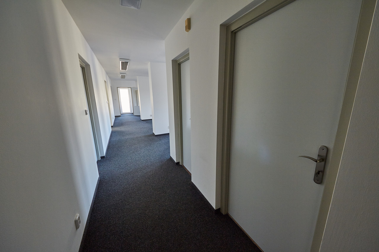 Klimatizovaný, samostatný kancelářský prostor s dvěma vchody, v 1.patře administrativní budovy s jídelnou, v průmyslovém areálu. Čtyři samostatné kanceláře 17m2 + společný 45m2 open space kancelářský prostor, servrovna, kuchyňka s myčkou nádobí, úklidová místnost, dámské a pánské toalety. Klimatizace, venkovní žaluzie, plastová okna, ústřední vytápění, samostatně měřená studená i teplá voda. Areál střežen kamerovým systémem. V přízemí budovy je k dispozici jídelna pro pracovníky areálu, k dispozici 4 parkovací místa před budovou. Volné ihned.