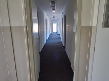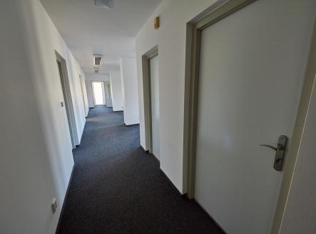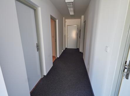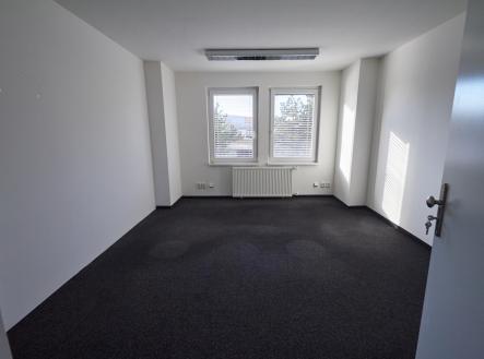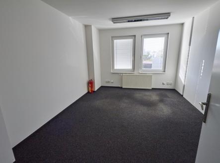 Klimatizovaný, samostatný uzavřený kancelářský prostor s dvěma vchody, v 1.patře administrativní budovy s jídelnou, v průmyslovém areálu. Čtyři samostatné kanceláře 17m2 + společný 45m2 open space kancelářský prostor, servrovna, kuchyňka s myčkou nádobí, úklidová místnost, dámské a pánské toalety. Klimatizace, venkovní žaluzie, plastová okna, ústřední vytápění, samostatně měřená studená i teplá voda. Areál střežen kamerovým systémem. V přízemí budovy je k dispozici jídelna pro pracovníky areálu, k dispozici 4 parkovací místa před budovou. Volné ihned.