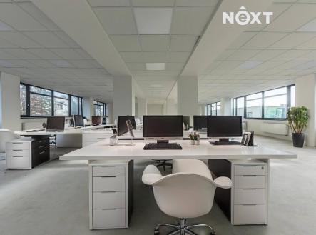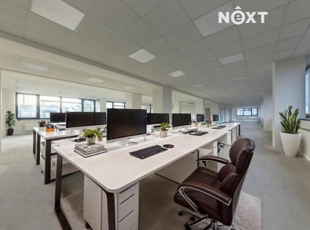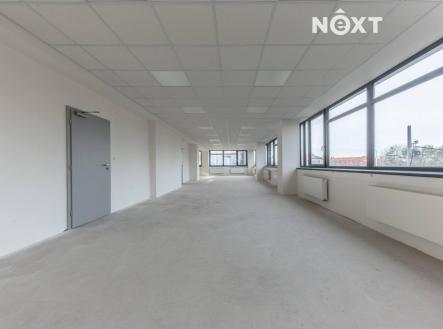 Exkluzivně nabízíme k pronájmu kancelářský prostor o celkové výměře 375 m² ve 4. nadzemním podlaží budovy na adrese Průběžná 76, Praha 10 – Strašnice. Hlavní část patra tvoří otevřený prostor o velikosti 347,35 m², který je možné upravit jako open space nebo rozčlenit na menší kanceláře a zasedací místnosti podle požadavků nájemce. Součástí zázemí jsou předsíň a WC pro ženy (3,48 m² + 6,19 m²), předsíň a WC pro muže (3,45 m² + 9,18 m²), technická místnost (2,44 m²), úklidová místnost (2,85 m²), m²). Patro je připraveno pro vedení datových rozvodů v podhledech, nabízí možnost instalace klimatizace, disponuje rozvody vody a kanalizace, ústředním vytápěním radiátory, silnoproudem i slaboproudem a napojením na vzduchotechnické trasy. Podlahy jsou betonové v hlavním open space a keramické v sociálním zázemí; stěny tvoří sádrové omítky a stropy kazetové SDK podhledy. Standardní výška stropu je přibližně 2,6 m. Prostor je přístupný výtahem i schodištěm a je vhodný pro dlouhodobé administrativní nebo kombinované využití díky dobré dostupnosti MHD, napojení na hlavní pražské tahy a občanské vybavenosti v bezprostředním okolí. Pro komunikaci uvádějte evidenční číslo zakázky N115209.