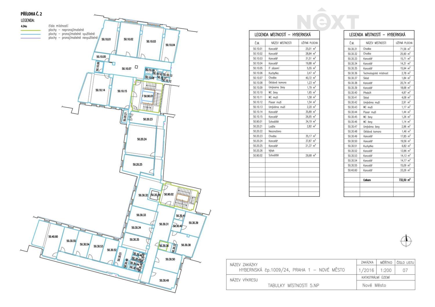 Nabízíme k pronájmu kancelářské prostory pod uzavřením o výměře 665,85 m2 ve čtvrtém patře administrativního objektu Hybernská centrum. Prostory disponují vlastními kuchyňkami a sociálním zázemím. Jsou kompletně zasíťované a klimatizované. Prostory lze rozdělit na menší jednotky: 1. Přední část s výměrou: od 227,81 m2 do 350,94 m2 2. Zadní část s výměrou: od 314,91 m2 do 438,04 m2 Možnost pronájmu parkování v podzemním podlaží. Velmi dobrá dopravní dostupnost, v docházkové vzdálenosti metro „C“ Hlavní nádraží a „B“ Náměstí republiky. Ilustrační fota. Pro více informací volejte makléřku. Pro komunikaci uvádějte evidenční číslo zakázky N110031.