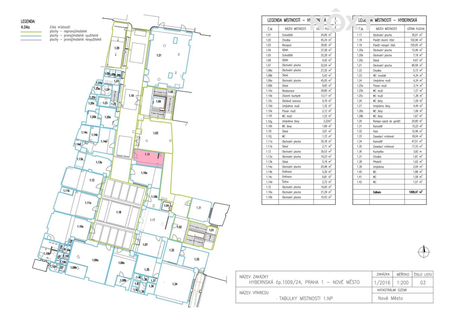 K pronájmu nabízíme obchodní jednotku o celkové výměře 17,10 m², z toho 16 m² tvoří samotný obchodní prostor a 1,10 m² představuje podíl na společných prostorech. Jednotka se nachází v neprůchozí pasáži - viz. přiložený plánek (č. 1.15). Prostor je kolaudován jako kosmetický salón. Lokalita nabízí výbornou dopravní dostupnost – v docházkové vzdálenosti se nachází stanice metra B – Náměstí Republiky a C – Hlavní nádraží, stejně jako zastávky tramvají a další občanská vybavenost. Pro komunikaci uvádějte evidenční číslo zakázky N116347.