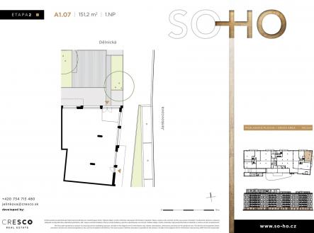 Nabízíme k pronájmu atraktivní komerční prostor o velikosti 151,2 m² v parteru druhé etapy SO-HO Rezidence. Prostor je ideální pro gastro provoz (bistro, kavárna, delikatesy), obchod se specialitami či bio produkty, kadeřnictví, kosmetický salon nebo jiné služby. Jednotka bude předána ve stavu shell & core, připravená k individuálním úpravám a dokončení dle potřeb nájemce. SO-HO Rezidence propojuje bydlení, práci i volný čas a přináší příjemné městské prostředí, kde nová alej se vzrostlými stromy, květinovými záhony a stíněnými předzahrádkami vytváří ideální místo pro každodenní zastavení i víkendové posezení. Komerční jednotky v přízemí jsou navrženy tak, aby podporovaly přirozené sousedské vazby a pestrý mix provozů – od kavárny přes lokální bistro až po květinářství či galerii. V první, již obydlené etapě projektu, sídlí oblíbené fitness centrum Form Factory a řemeslná pekárna s kavárnou Naše Toustárna, díky nimž se lokalita těší stálému zájmu místních obyvatel. Využijte příležitost rozjet svůj podnik v dynamické a rychle se rozvíjející části Holešovic, která patří mezi nejžádanější lokality Prahy. Kontaktujte nás ještě dnes.