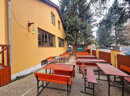 Nabízíme Vám k pronájmu komerční prostor na pěkném, viditelném a frekventovaném místě, v ulici Střelnická – Praha 8 Kobylisy. Jedná se prostor vhodný k provozování kavárny, cukrárny, vinotéky či jiného druhu podnikání v oboru gastro. Prostor je situován na frekventovaném místě v ulici Střelnická. Tento komerční prostor nabízí dvě propojené místnost, tedy bar 13,7 m2 přístupný z ulice Střelnická, hlavní prostor 31 m2 vybavený stoly, židlemi a lavicemi, panské a dámské WC, sklad. Dále je možné využít sklad 15 m2 v zadní části budovy (příprava a sklad). Součástí pronájmu je též venkovní posezení na dvou terasách (54 a 55 m2), které díky vzrostlým stromům působí útulně, součástí teras je posezení skládající se ze stolů a lavic. Venkovní prostor dále nabízí k využití zahradní domek vhodný např. jako stánek na zmrzlinu, či gril. Výborná lokalita vzhledem k přilehlé, frekventované komunikaci, kde je v místě kompletní obč. vybavenost. V okolí je dostatek parkovacích míst, vč. parkování s nabíjecí stanicí pro elektromobily. Prostor je volný ihned k dispozici. EPNB připravujeme, proto prozatím uvádíme třídu G. V případě zájmu zapotřebí uhradit první nájem vč. služeb (energie na zájemce, el. a plyn), vratnou kauci a provizi za zprostředkování.