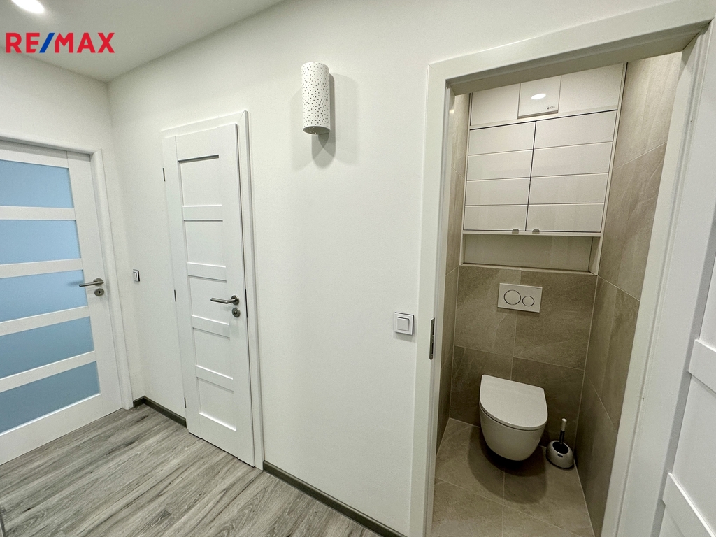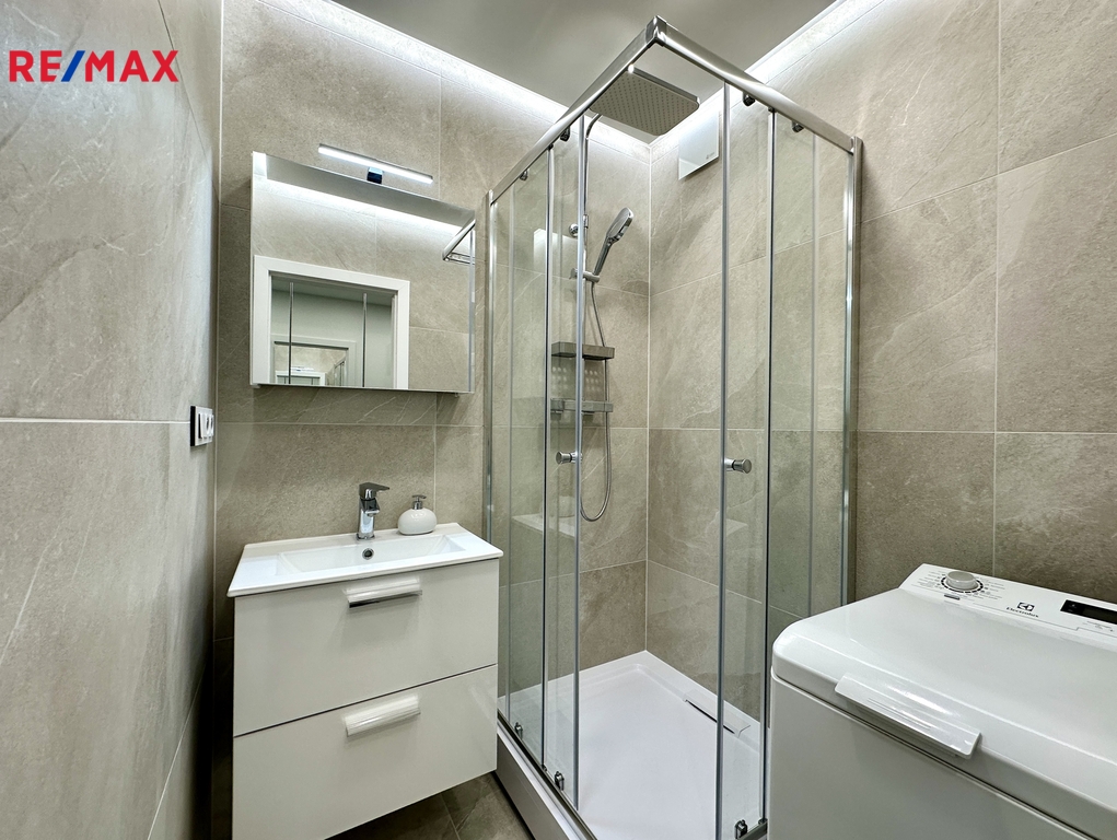 Nabízíme k dlouhodobému pronájmu krásný, kompletně zrekonstruovaný byt 2+1/2L (o výměře 52 m2 + lodžie 10 m2) v devátém patře udržovaného zatepleného domu se dvěma výtahy, v Praze 10 – Vršovice. Byt má vstupní předsíň, dva velké neprůchozí pokoje, koupelnu se sprchovým koutem a pračkou a samostatné WC. Oba pokoje mají vstup na vlastní lodžii. Obývací pokoj je vybaven klimatizací. Vestavěné skříně se nacházejí v chodbě a v ložnici. Nová designová plně funkční kuchyň s dostatkem úložného prostoru je vybavena vestavěnými spotřebiči (indukční varnou deskou, elektrickou horkovzdušnou troubou, myčkou na nádobí, mikrovlnou troubou s grilem a Crispem a vestavěnou digestoří), a samostatně stojící chladničkou s mrazákem (lze umístit i velkou lednici "Ameriku"). Kuchyň nabízí dostatek prostoru pro jídelní stůl až pro 4 osoby a je prosvětlená okny v celé šíři. Všechna okna bytu jsou orientována na západ do tichého parčíku mezi domy a jsou opatřena žaluziemi. Byt v roce 2025 prošel kompletní rekonstrukcí, na podlahu byla položena vinylová podlaha, byt je kompletně bezprahový, všechny stěny bytu mají navíc hladkou broušenou stěrku. Celý byt je vybaven moderním osvětlením s ovládáním intenzity a odstínu bílé pro nastavení atmosféry a pohody. Světelné zdroje hlavní (lustry) i ambientní (světelné konzole) lze dálkově ovládat, příp. napojit na chytré domácí systémy (Google Home, Amazon Alexa atd.). Všechny vestavěné skříně jsou vybaveny vnitřním osvětlením s automatikou. Vytápění a ohřev teplé vody je centrální. Díky novému zateplení domu a novým oknům i orientaci na západ je byt velmi úsporný na spotřebu tepla. K bytu patří sklepní kóje 2 m2 se zabezpečeným přístupem, pouze výtahem na čip, kamerovým dohledem a dodatečnou bezpečnostní uzamykatelnou závorou. Skvělá lokalita a dopravní dostupnost do centra Prahy. Díky umístění mimo rušnou komunikaci je byt tichý, před i za domem jsou malé parčíky se vzrostlými stromy, vzhledem k orientaci na západ je byt slunný. Přímo v okolí domu se nachází velké nákupní centrum Eden, supermarkety Penny a Tesco a zastávky tramvají a autobusů Koh-i-noor, další obchody a restaurace. Parkování je možné vedle domu (modrá zóna), či za domem (bez omezení) nebo na bočním menším parkovišti (též bez omezení). Nájemné činní 25 000,-Kč + poplatky na 2 osoby 2 600,- Kč, elektřina bude převedena na nájemce. Vratná kauce je 30 000,-Kč. Byt je ihned volný.
