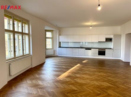 Nabízíme krásný, velice prostorný světlý byt 3+kk (o podlahové ploše 137 m2), který se nachází ve čtvrtém patře cihlového domu s výtahem. Dispozice bytu obsahuje vstupní chodbu 21 m2, rozlehlý obývací pokoj s kuchyňským koutem 53 m2, dvě ložnice 28 m2 a 22 m2, koupelnu se sprchovým koutem s WC a bidetem, a ještě jedno samostatné WC s umyvadlem. Byt je vybaven kuchyňskou linkou s vestavěnými spotřebiči, skříněmi v ložnicích a v předsíni. Na podlahách jsou parkety a dlažba. Ohřev teplé vody a vytápění je pomocí vlastního plynového kotle. Dům se nachází na velmi atraktivním místě v širším centru města s výbornou dopravní dostupností do centra, veškerá občanská vybavenost v místě: školy, školky, dětská hřiště, sportovní areál, restaurace. V docházkové vzdálenosti jsou Mahlerovy a Riegerovy sady, park Parukářka, Pražačka a Vítkov. Měsíční nájemné činní 40 000,-Kč + poplatky 2 500,- Kč + převod elektřiny a plynu na nájemce. Kauce je 40 000,-Kč při nástupu a za 6 měsíců dalších 40 000,-Kč. Byt je ihned volný.