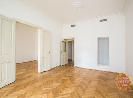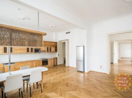 Nabízíme k pronájmu luxusní nezařízený byt o dispozici 5+1. Byt díky rozloze 200 m2 nabízí dostatek prostoru. Je situován ve 4. patře cihlového domu s výtahem v samotném centru Prahy nedaleko Staroměstského náměstí v nádherném domě na rohu Pařížské a Široké ulice. Byt sestává z předsíně, ze čtyř ložnic, obývacího pokoje, kuchyně a dvou ložnic. Na stropech jsou krásné štuky. Kuchyně je vybavena všemi spotřebiči. V bytě se nachází 2 koupelny - v jedné je toaleta a sprchový kout a v druhé vana, toaleta a sauna. Zaveden je bezdrátový internet, satelitní televize a telefon, nechybí klimatizace. Na podlahách jsou krásné zachovalé parkety. Perfektní lokalita s vynikající dopravní dostupností a občanskou vybaveností. Metro A Staroměstská 5 minut od domu. V okolí bytu se nachází množství kulturních památek, divadla či starobylý židovský hřbitov.